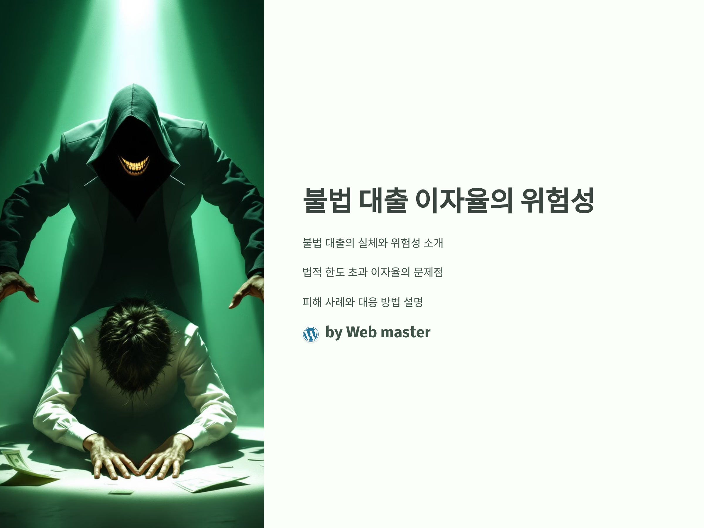 불법 대출 이자율의 경우, 법적인 한도보다 훨씬 높은 금리를 부과하여 대출자를 재정적으로 압박합니다. 이러한 금리는 대출자에게 심각한 경제적 손실을 초래할 수 있으며, 나아가 법적 처벌을 받게 될 수 있습니다. 이 글을 통해 불법 대출의 위험성과 그로 인한 피해를 미리 알고, 안전한 금융 거래를 할 수 있는 방법에 대해 알아보겠습니다.