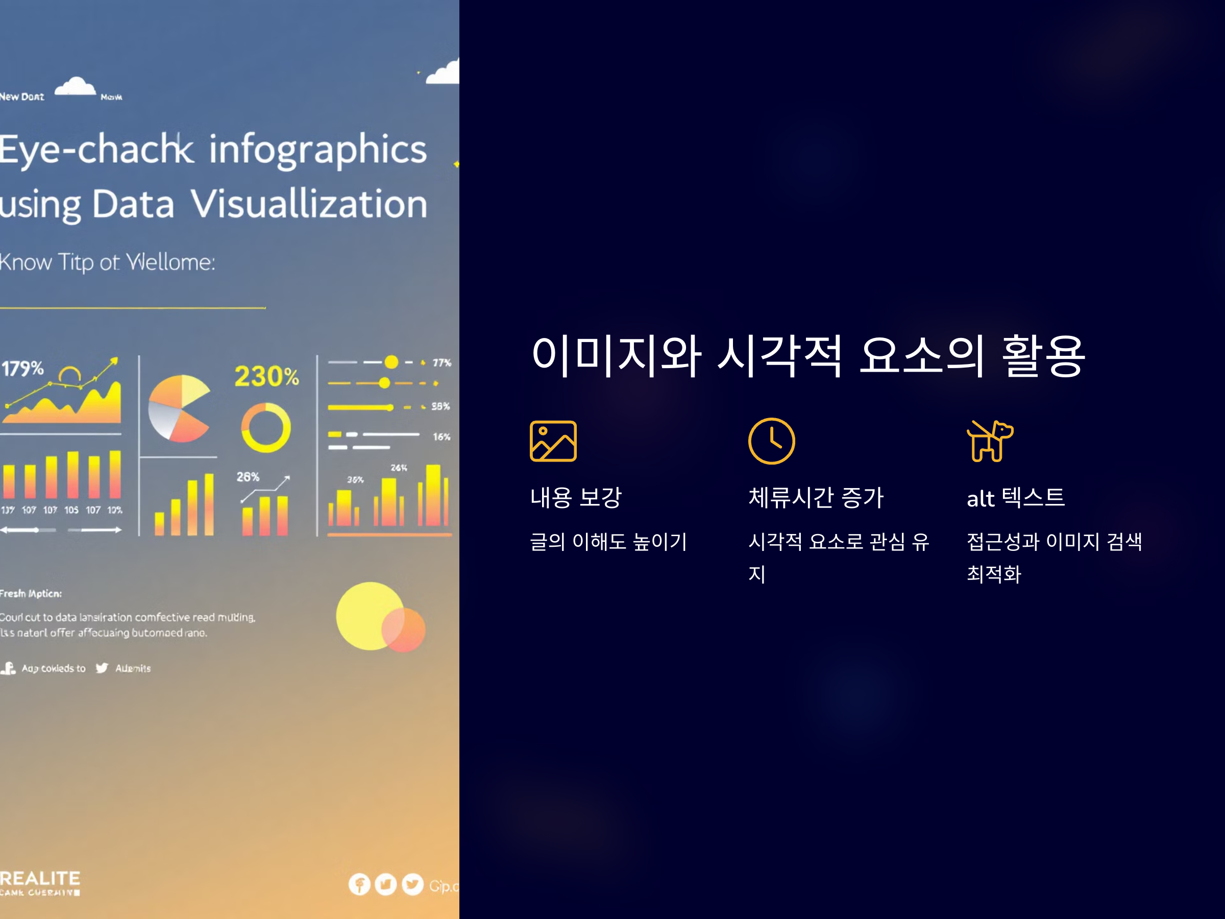 이미지를 포함할 때는 반드시 alt 텍스트를 작성해야 합니다. 이는 이미지 검색에 영향을 미칠 뿐만 아니라, 시각 장애인 사용자들이 화면 읽기 프로그램을 통해 블로그 글을 이해하는 데 도움을 줍니다.