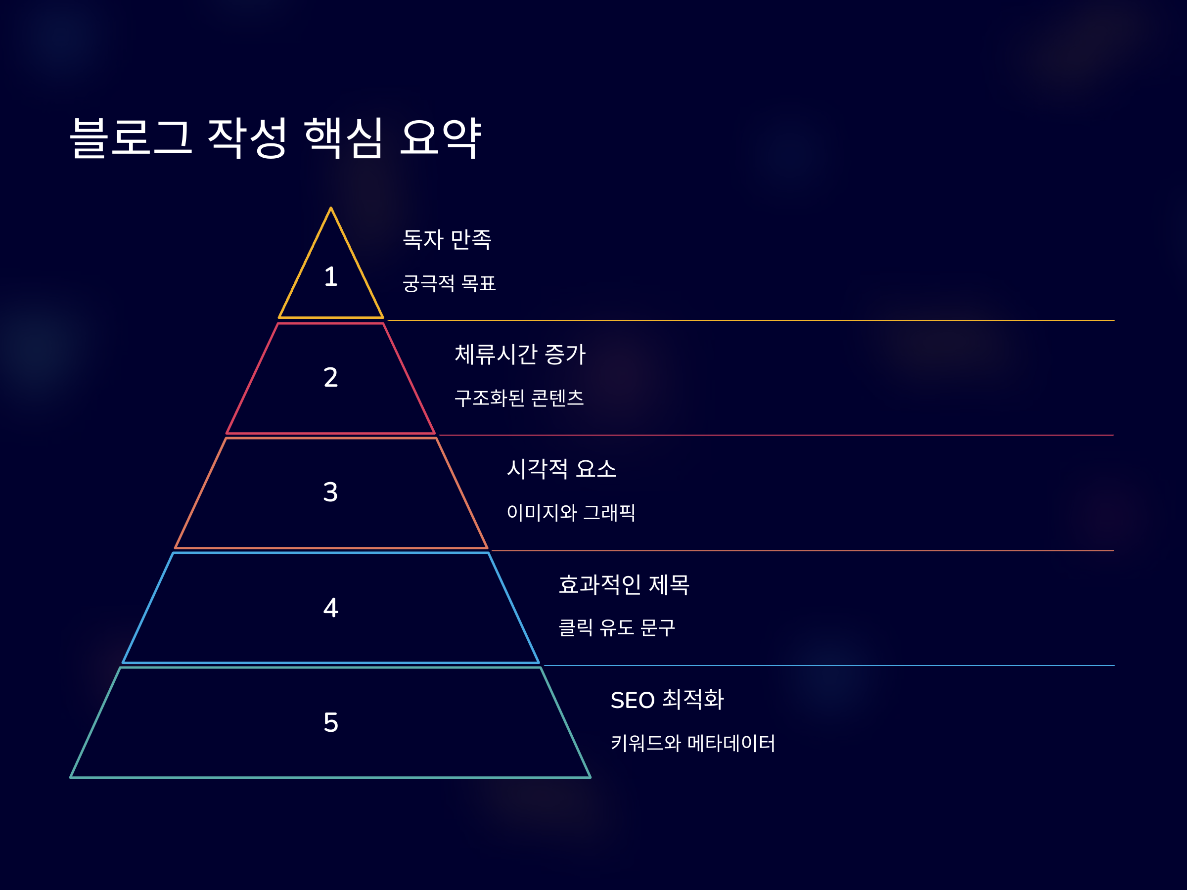 블로그 포스트를 성공적으로 작성하기 위해서는 여러 가지 요소들을 고려해야 합니다. SEO 최적화, 독자 중심의 콘텐츠, 효과적인 제목 작성, 시각적 요소의 활용, 그리고 체류 시간을 늘리는 방법까지 모두 중요한 요소들입니다. 이를 잘 조합하여 글을 작성하면, 블로그 트래픽을 늘리고, 더 많은 독자들을 유치할 수 있습니다.