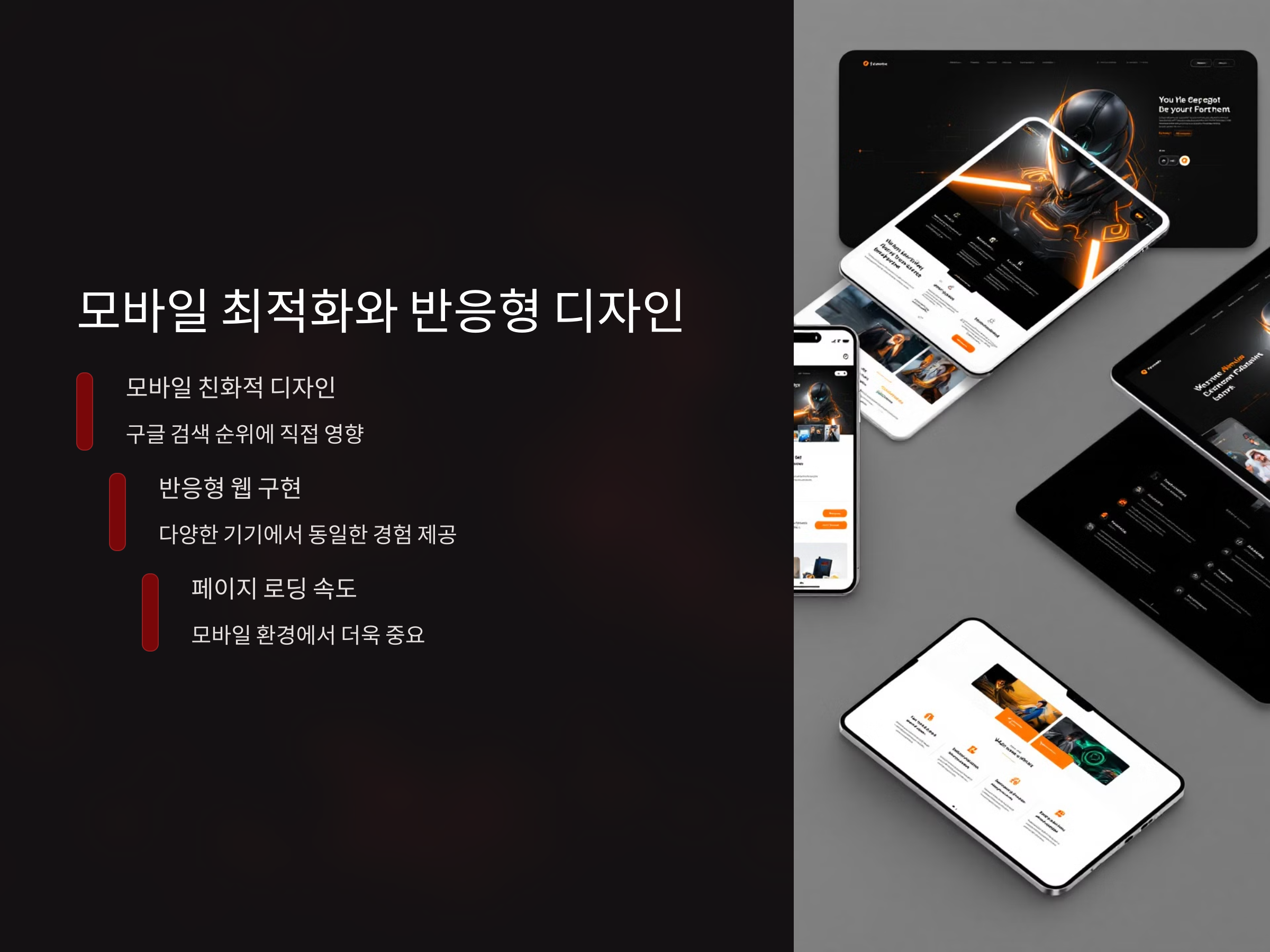 현재 대부분의 사용자가 모바일 기기를 통해 웹을 검색하고 있습니다. 구글은 모바일 친화적인 웹사이트를 선호하기 때문에, 모바일 최적화는 필수적입니다. 블로그가 모바일에서도 잘 보이도록 반응형 디자인을 적용해야 합니다. 반응형 디자인은 모바일, 태블릿, 데스크탑 등 다양한 기기에서 동일한 사용자 경험을 제공할 수 있습니다.
