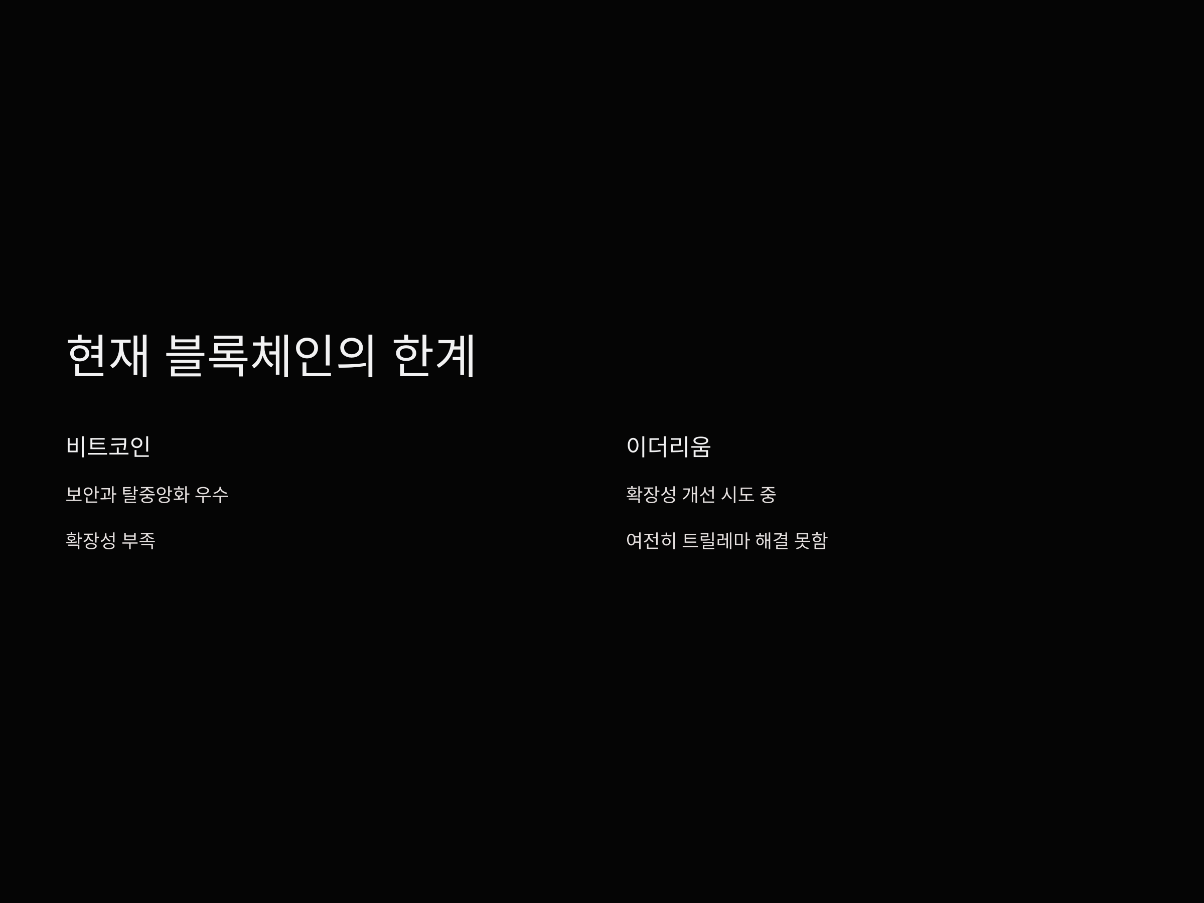 블록체인 기술의 가장 큰 도전 중 하나는 바로 트릴레마 문제입니다. 이는 블록체인 네트워크에서 탈중앙화, 보안, 확장성이라는 세 가지 핵심 요소를 동시에 만족시키는 것이 극히 어려운 문제라는 뜻입니다. 블록체인 네트워크를 설계할 때, 이 세 가지 중 두 가지를 선택하고 나머지 하나는 희생하는 경우가 많습니다. 예를 들어, 비트코인과 같은 시스템은 보안과 탈중앙화를 중시하지만, 확장성은 낮은 수준에 머물고 있습니다. 이더리움은 확장성을 개선하려고 하지만, 여전히 보안과 탈중앙화에 있어서 트릴레마를 해결하지 못하고 있는 상황입니다.
