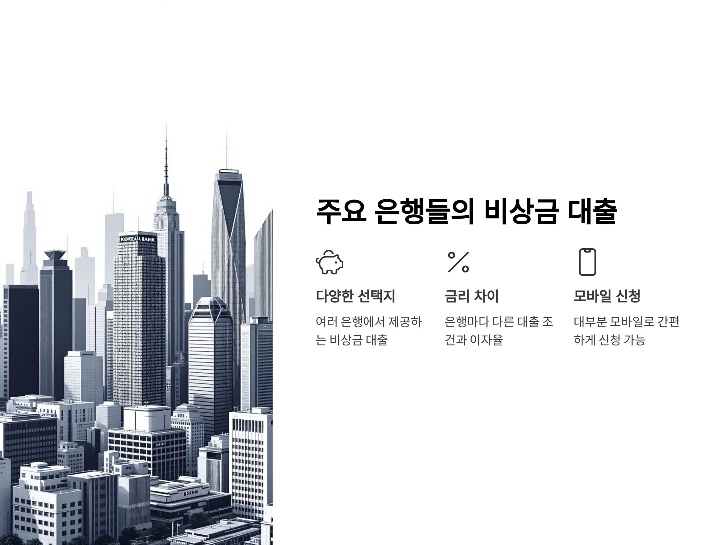 비상금 대출을 고려할 때 가장 중요한 것은 자신에게 맞는 조건을 선택하는 것입니다. 이 글에서는 비상금 대출을 제공하는 주요 은행들과 그들의 대출 조건을 상세히 살펴보겠습니다.