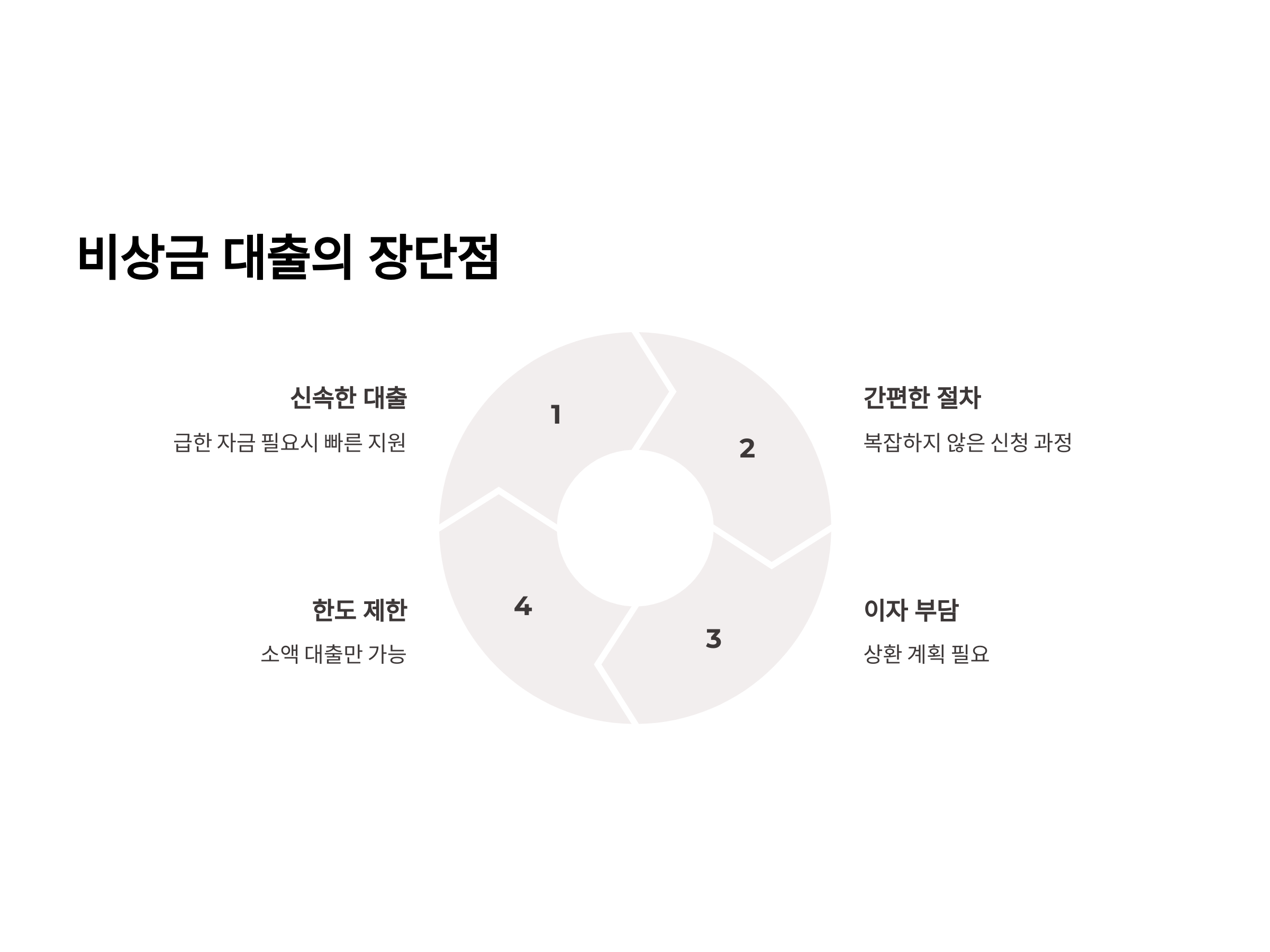 하지만 단점으로는 이자 부담이 존재하며, 상환 기간이 짧을 경우 매달 갚아야 하는 금액이 부담이 될 수 있습니다. 또한, 대출 한도가 낮아 큰 금액을 필요로 하는 사람에게는 한계가 있을 수 있습니다.