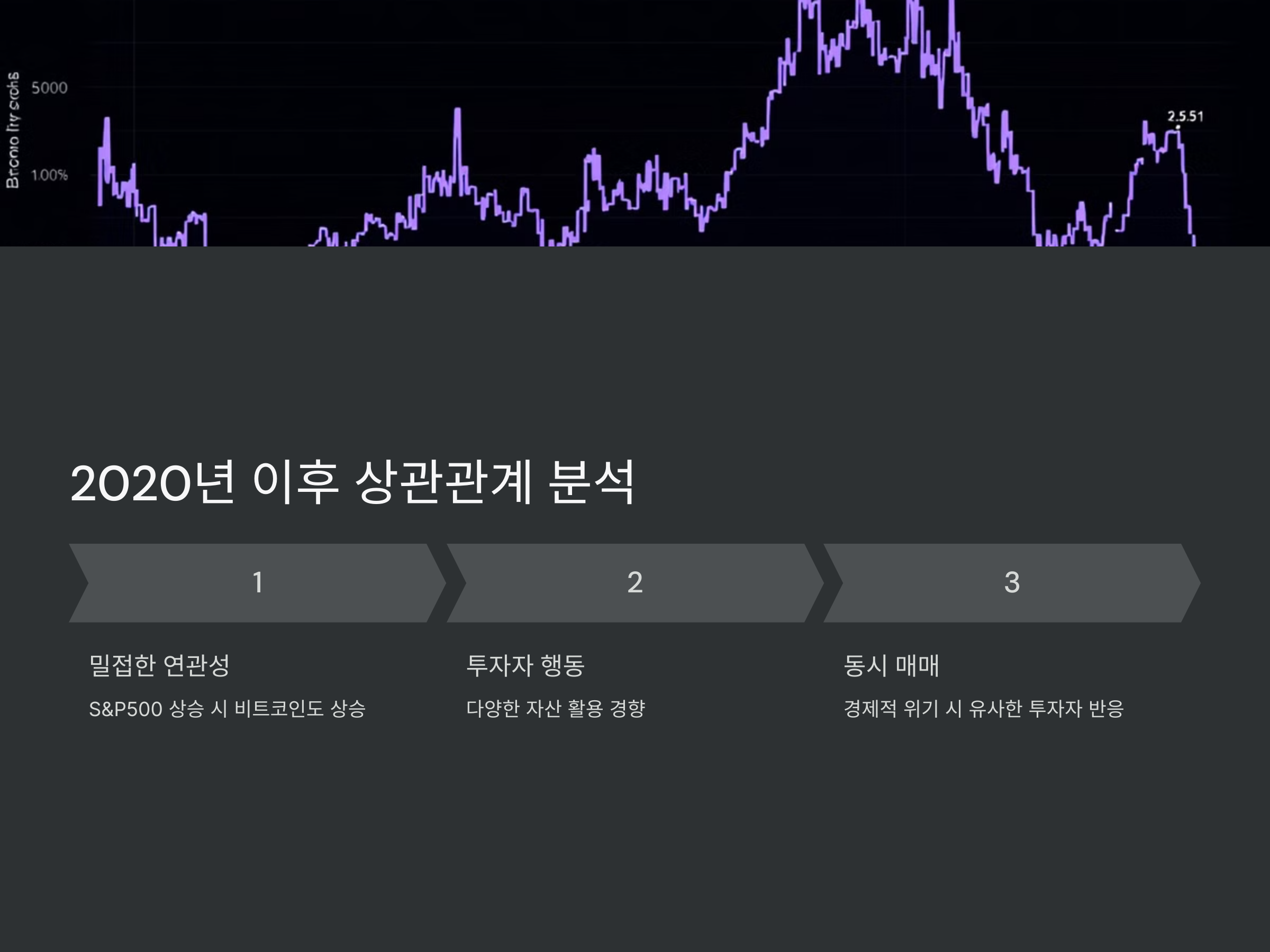 2020년 팬데믹 이후, 두 자산은 모두 매우 높은 변동성을 경험했으며, 중앙은행의 금리 인하와 같은 정책적 변화에 의해 영향을 받았습니다. 비트코인과 S&P500 모두 미국 달러의 가치를 하락시키는 경제적 환경에서 상승세를 보였고, 이는 두 자산이 상관관계를 형성하게 된 주요 요인 중 하나입니다. 따라서, 두 자산이 서로 영향을 미치는 방식에 대한 이해는 투자자들에게 매우 중요한 정보가 됩니다.