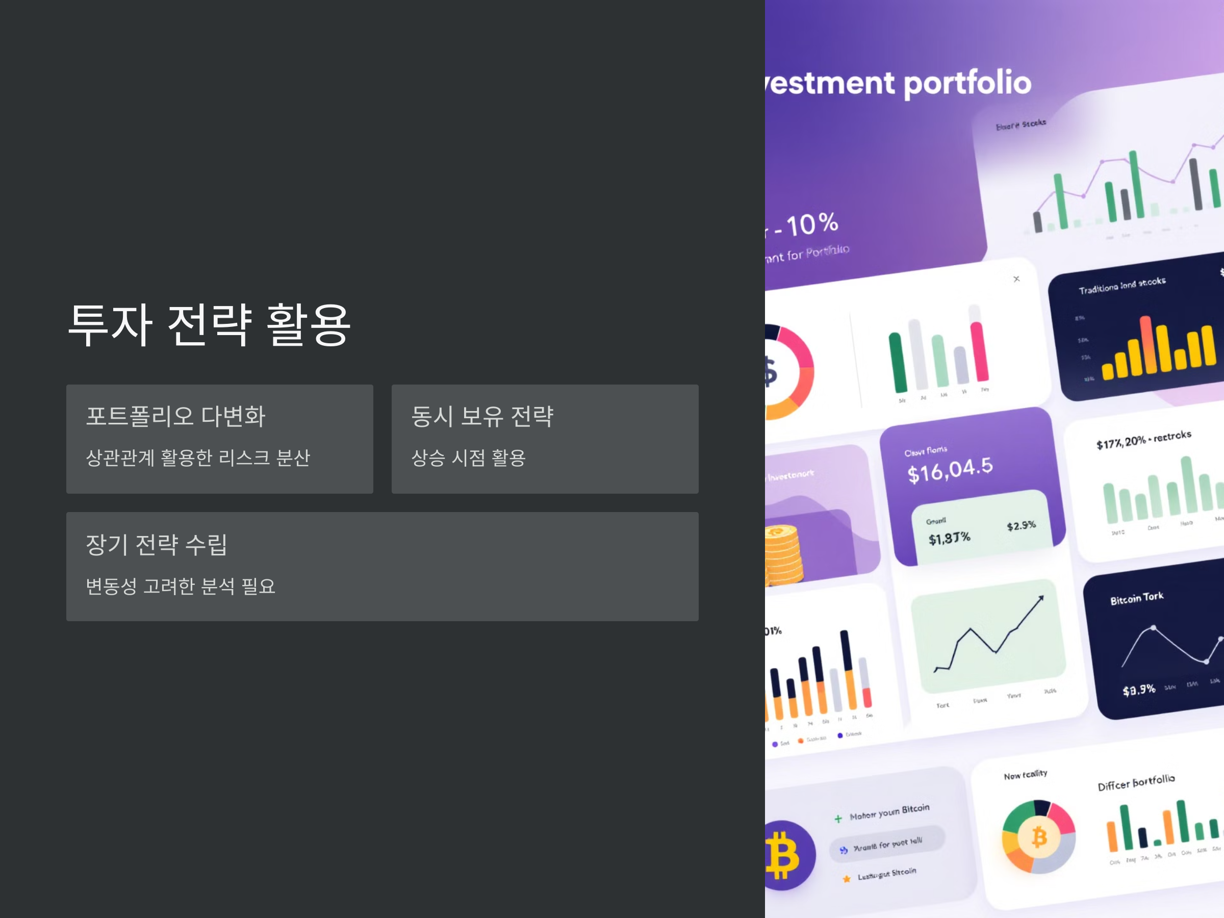 투자자들은 비트코인과 S&P500의 상관관계를 활용해 보다 다변화된 포트폴리오를 구성할 수 있습니다. 두 자산이 상관관계를 유지하는 경우, 이를 활용하여 리스크를 분산시킬 수 있습니다. 예를 들어, 비트코인의 가격이 급격하게 상승하는 시점에서 S&P500의 지수도 상승할 가능성이 높다면, 두 자산을 동시에 보유하는 것이 유리할 수 있습니다.
