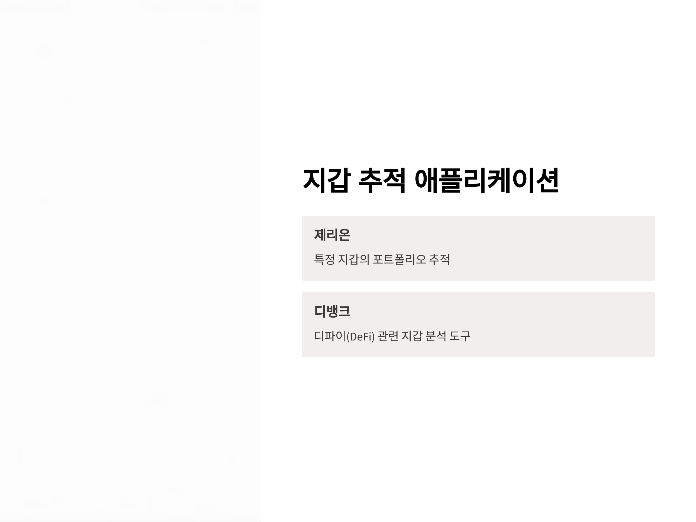 - 제리온(Zerion): 특정 지갑의 포트폴리오 추적 가능