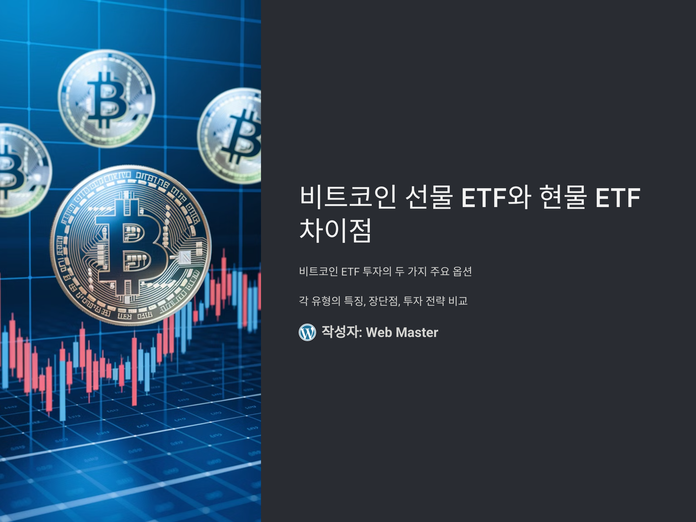비트코인 투자자들에게 ETF(상장지수펀드)는 간편한 투자 방법으로 각광받고 있습니다. 하지만 비트코인 ETF는 크게 선물 ETF와 현물 ETF 두 가지로 나뉘며, 이 둘의 차이를 이해하는 것이 매우 중요합니다. 특히, 최근 미국과 한국을 포함한 여러 국가에서 비트코인 ETF 승인 여부가 주요 이슈로 떠오르면서, 각 ETF의 장단점을 비교하는 것이 필수적입니다. 이번 글에서는 비트코인 선물 ETF와 현물 ETF의 차이점을 상세히 살펴보고, 투자 시 어떤 점을 고려해야 하는지 알아보겠습니다.
