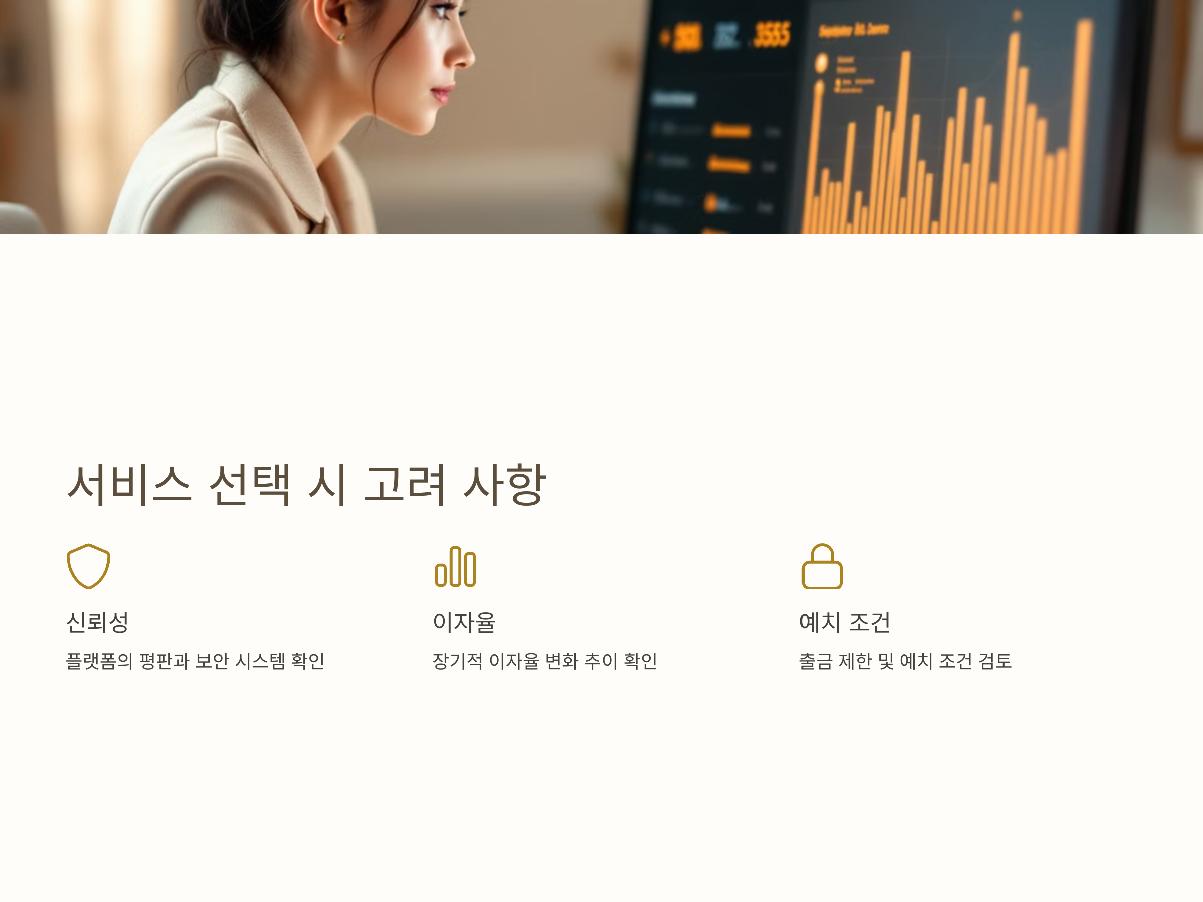 비트코인 예치 서비스를 선택할 때는 몇 가지 중요한 사항을 고려해야 합니다. 첫째, 서비스 제공자의 신뢰성입니다. 일부 플랫폼은 높은 이자율을 제공하면서도 보안이나 고객 보호 측면에서 부족한 부분이 있을 수 있습니다. 따라서, 서비스 제공자의 평판을 확인하고, 그들이 제공하는 보안 및 리스크 관리 시스템을 점검하는 것이 중요합니다.
