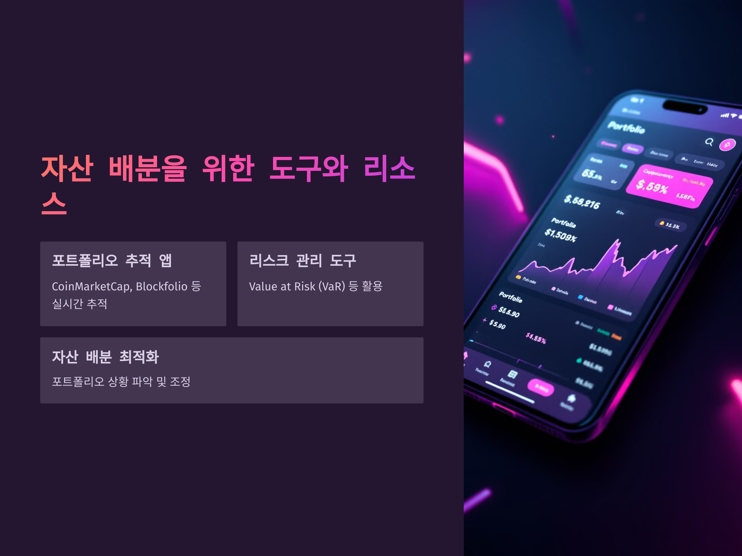 앱이나 웹사이트를 통해 투자한 자산의 분포를 실시간으로 추적할 수 있습니다. 예를 들어, CoinMarketCap이나 Blockfolio와 같은 앱을 통해 비트코인의 가격 변동과 자산 배분 현황을 쉽게 파악할 수 있습니다. 이러한 도구를 사용하면 투자자의 포트폴리오 상황을 명확하게 보고, 자산 배분을 최적화할 수 있습니다.