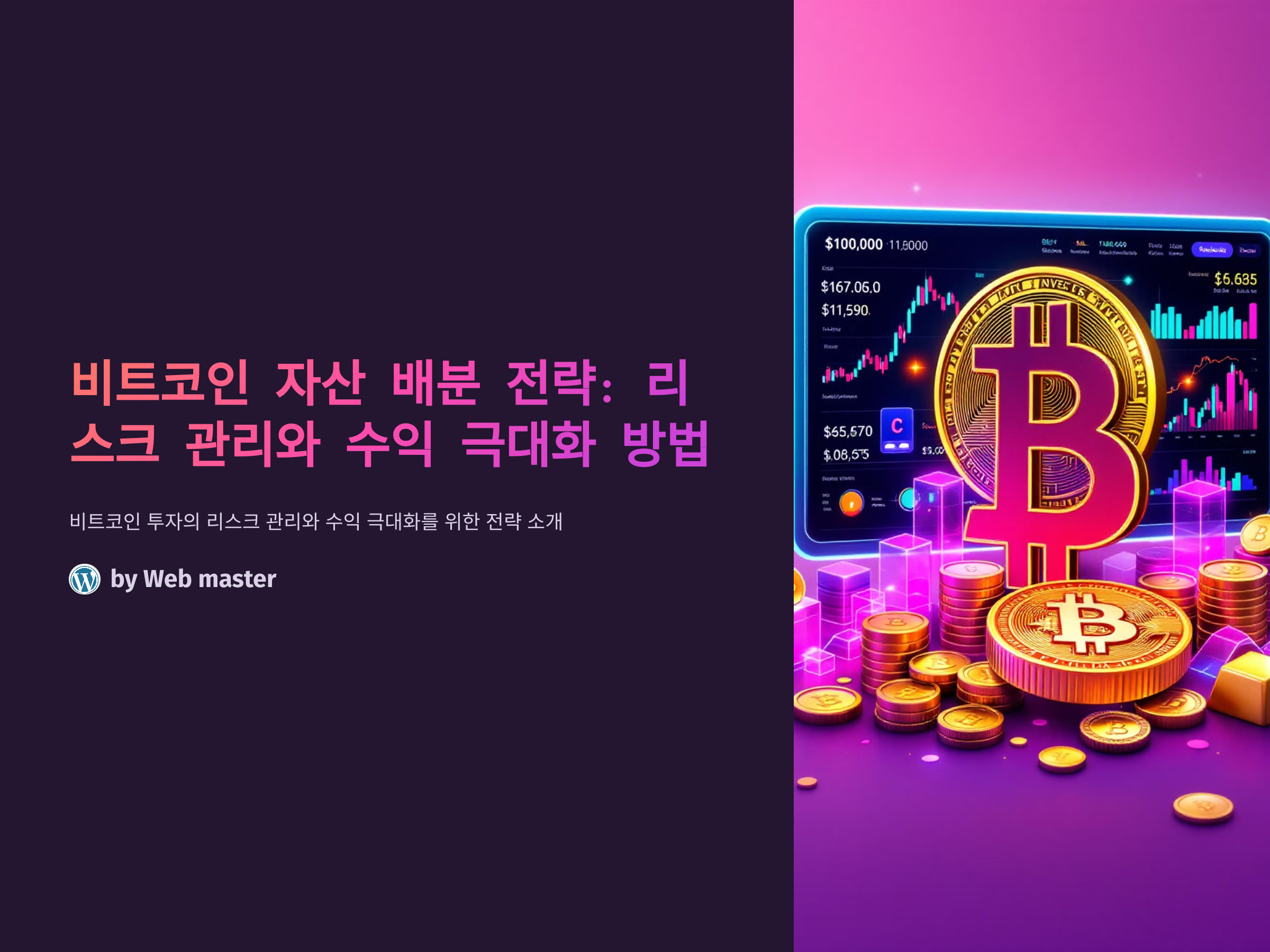 비트코인은 그 자체로 매력적인 투자 자산이지만, 그 변동성과 높은 리스크 때문에 어떻게 자산을 배분하느냐가 중요한 투자 전략이 됩니다. 비트코인에 대한 자산 배분 전략을 잘 세우면 리스크를 분산시키고, 장기적인 수익을 극대화할 수 있습니다. 이 글에서는 비트코인 자산 배분 전략을 설명하고, 이를 어떻게 적용할 수 있는지에 대해 다뤄보겠습니다.