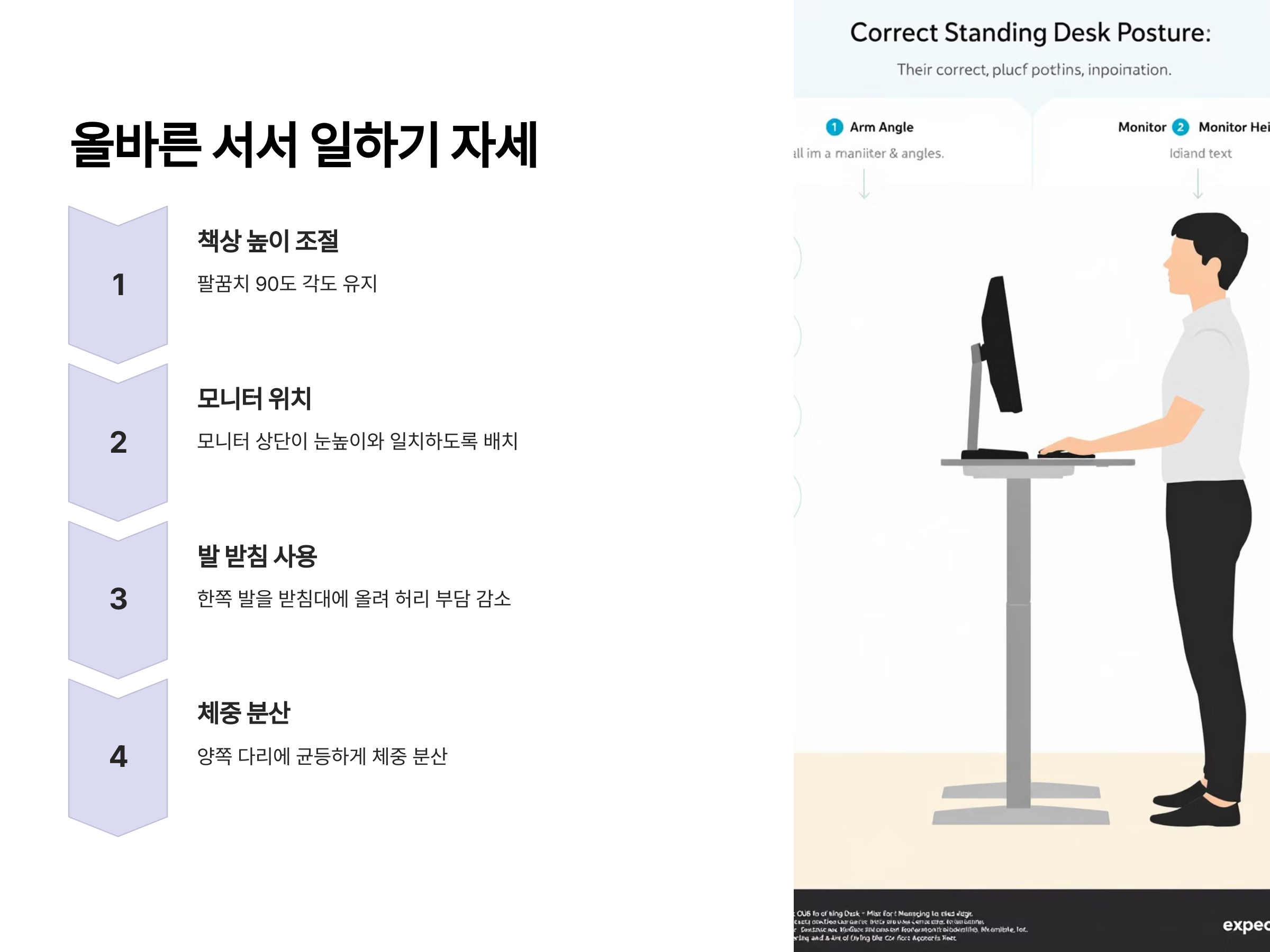 서서 일하기 책상을 효과적으로 사용하려면 올바른 자세를 유지하는 것이 중요합니다. 잘못된 자세로 서 있게 되면 허리에 또 다른 부담이 될 수 있기 때문입니다.