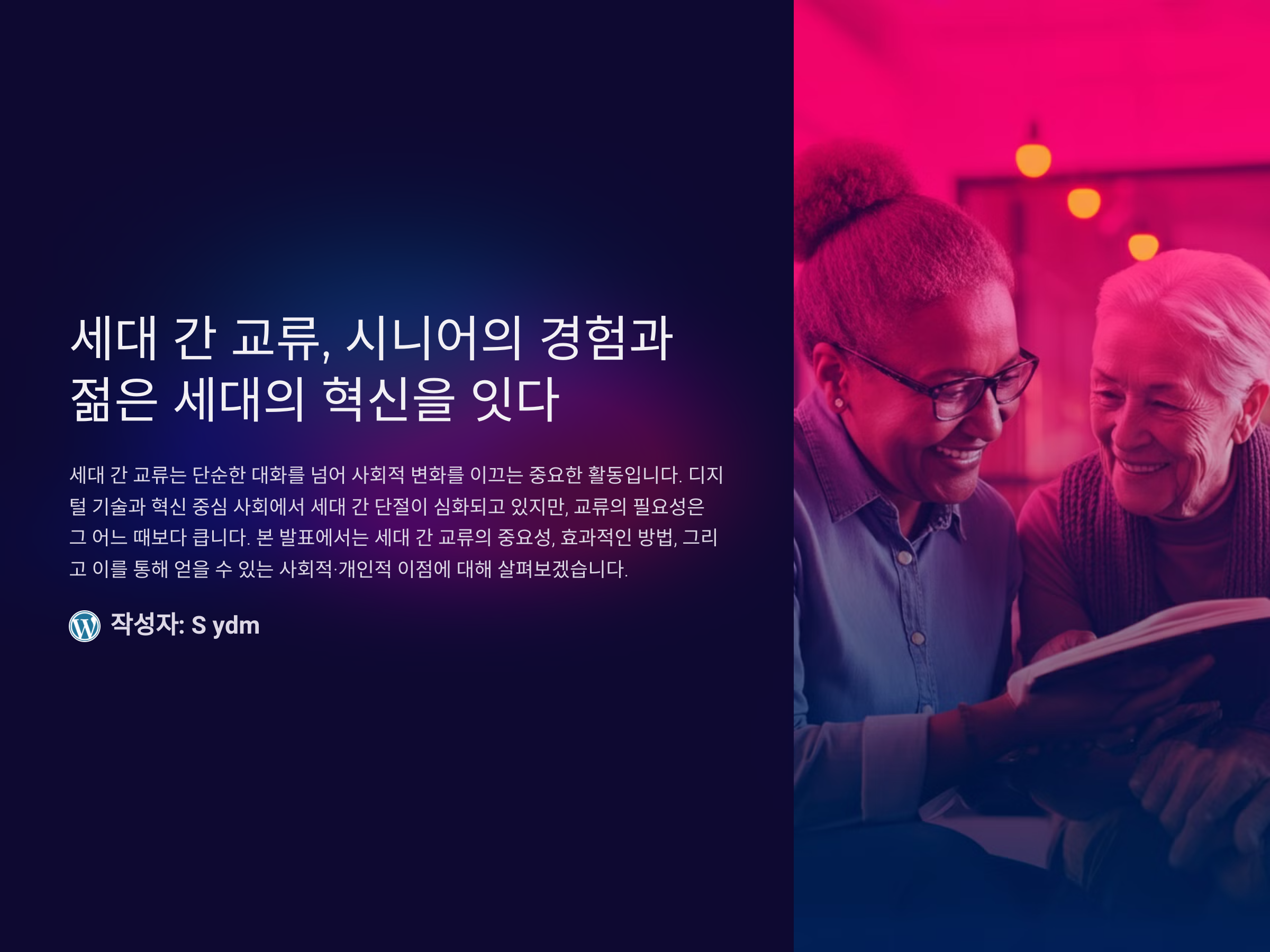 세대 간의 대화는 서로의 관점과 가치를 이해하고 존중하는 기회를 제공하며, 이를 통해 공동체 의식을 높일 수 있습니다.