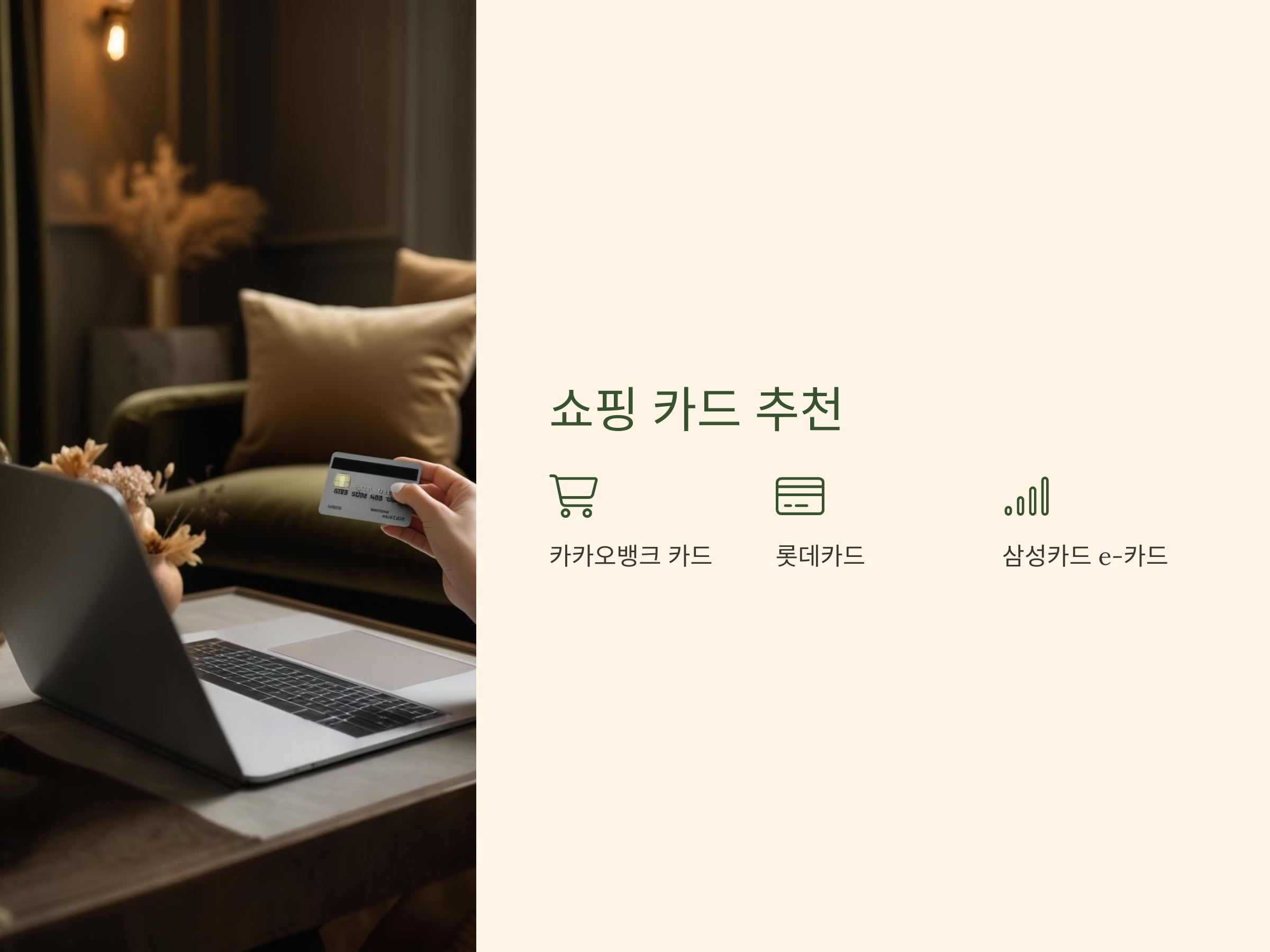 - 쇼핑 중심: 온라인 쇼핑이나 오프라인 쇼핑을 자주 한다면, 쇼핑몰에서 추가 혜택을 받을 수 있는 카드를 고려하세요.