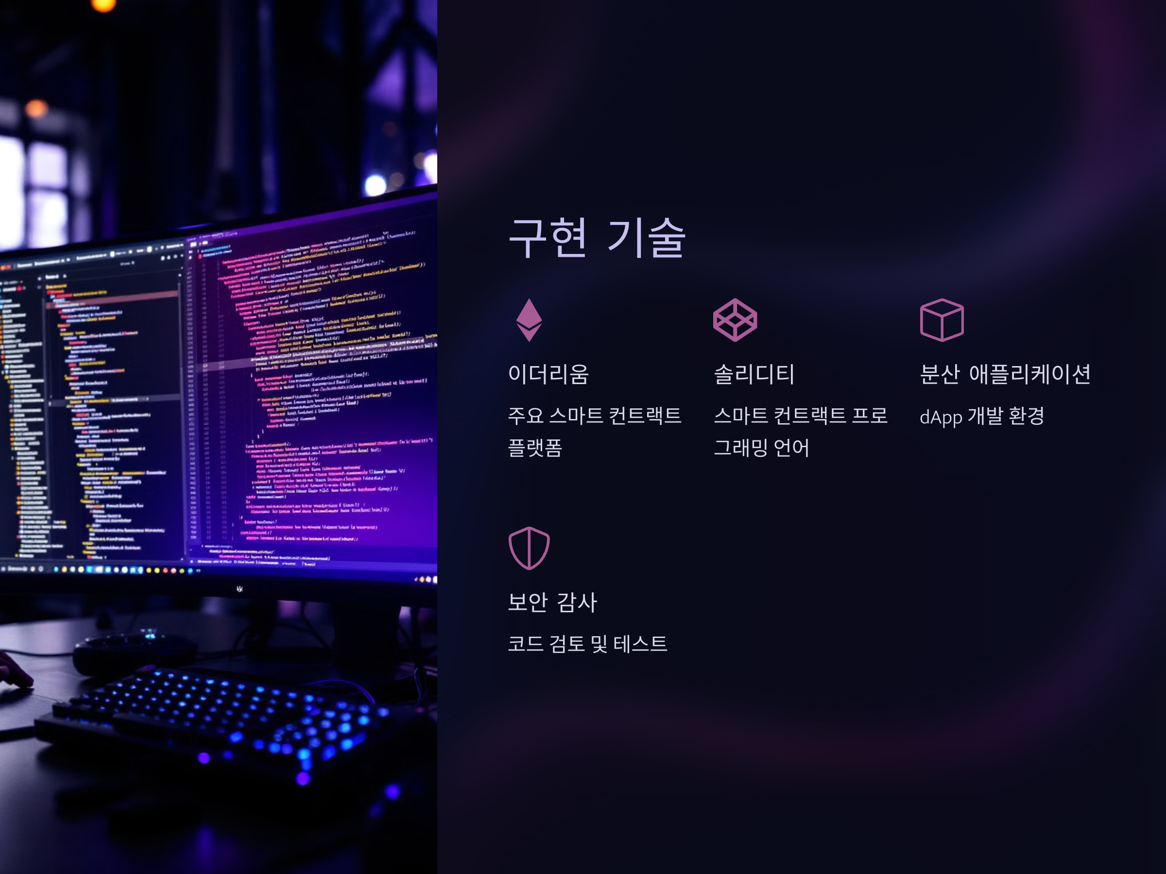 스마트 컨트랙트를 구현하려면 블록체인 기술과 프로그래밍 언어에 대한 깊은 이해가 필요합니다. 이더리움에서는 스마트 컨트랙트를 작성하기 위해 Solidity라는 프로그래밍 언어를 사용합니다. 그러나 스마트 컨트랙트를 안전하게 작성하고, 테스트하고 배포하는 과정은 매우 중요한 작업입니다. 블록체인 네트워크의 처리 속도와 확장성 문제도 해결해야 할 과제 중 하나입니다. 이러한 기술적 도전 과제를 해결하고, 스마트 컨트랙트의 보안성과 효율성을 높이는 연구가 계속 진행되고 있습니다.