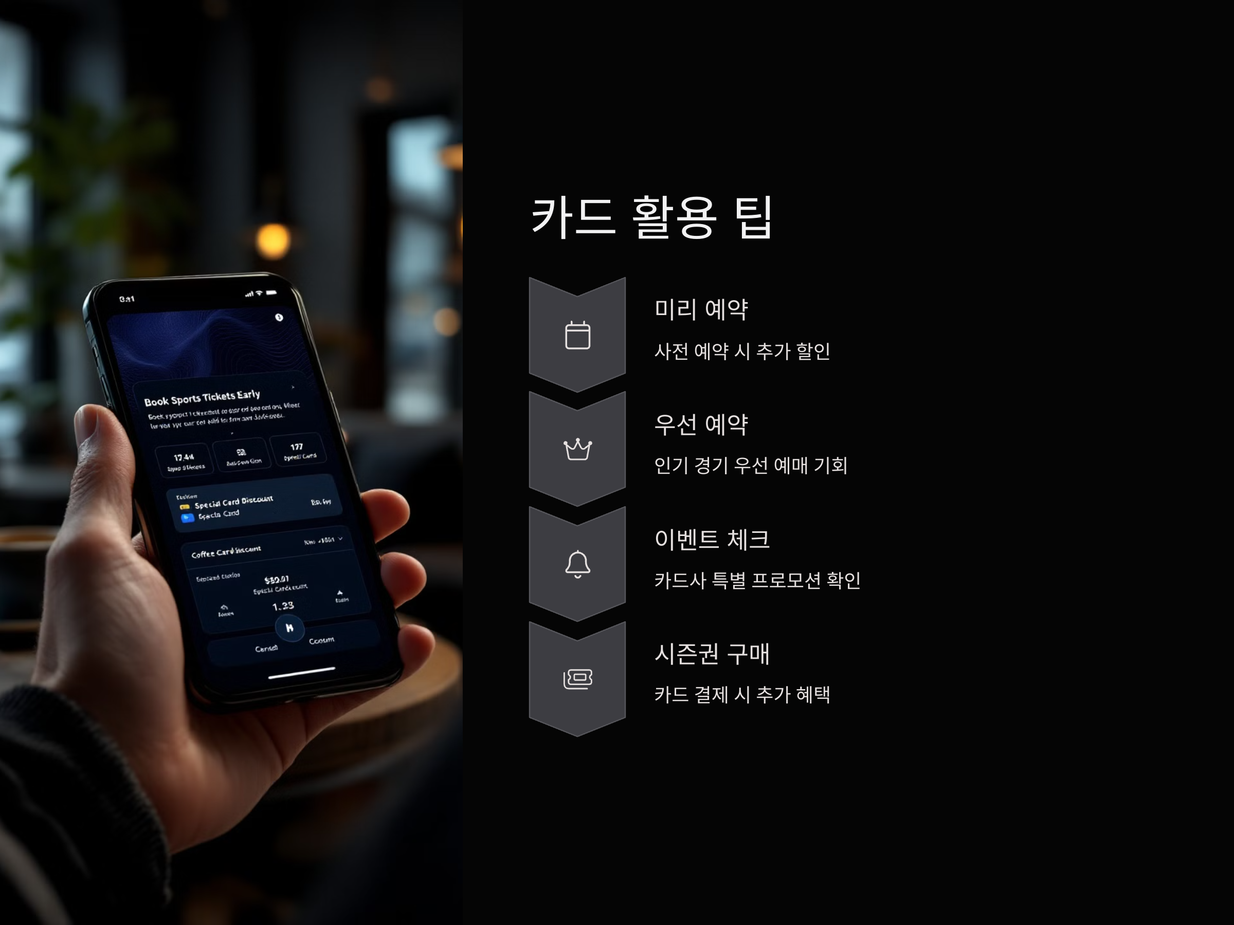 이제, 스포츠 경기 할인 카드를 선택할 때 주의할 점과 함께 어떤 혜택들이 제공되는지 살펴보겠습니다.
