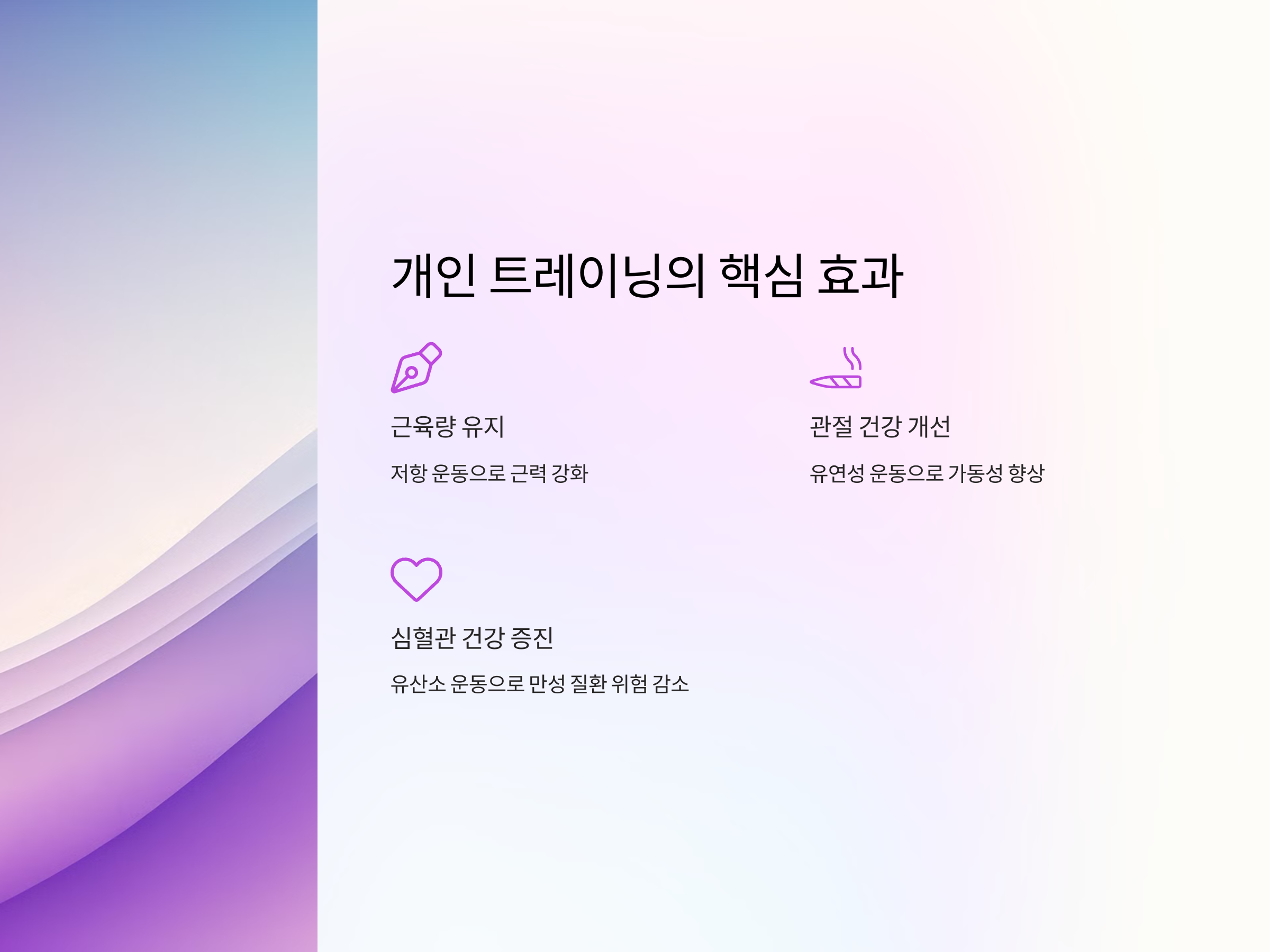 건강한 노후를 위해 시니어에게 맞는 개인 트레이닝은 매우 중요합니다. 전문가의 도움을 받아 신체적 제약을 극복하고 더 활기찬 삶을 시작해보세요!
