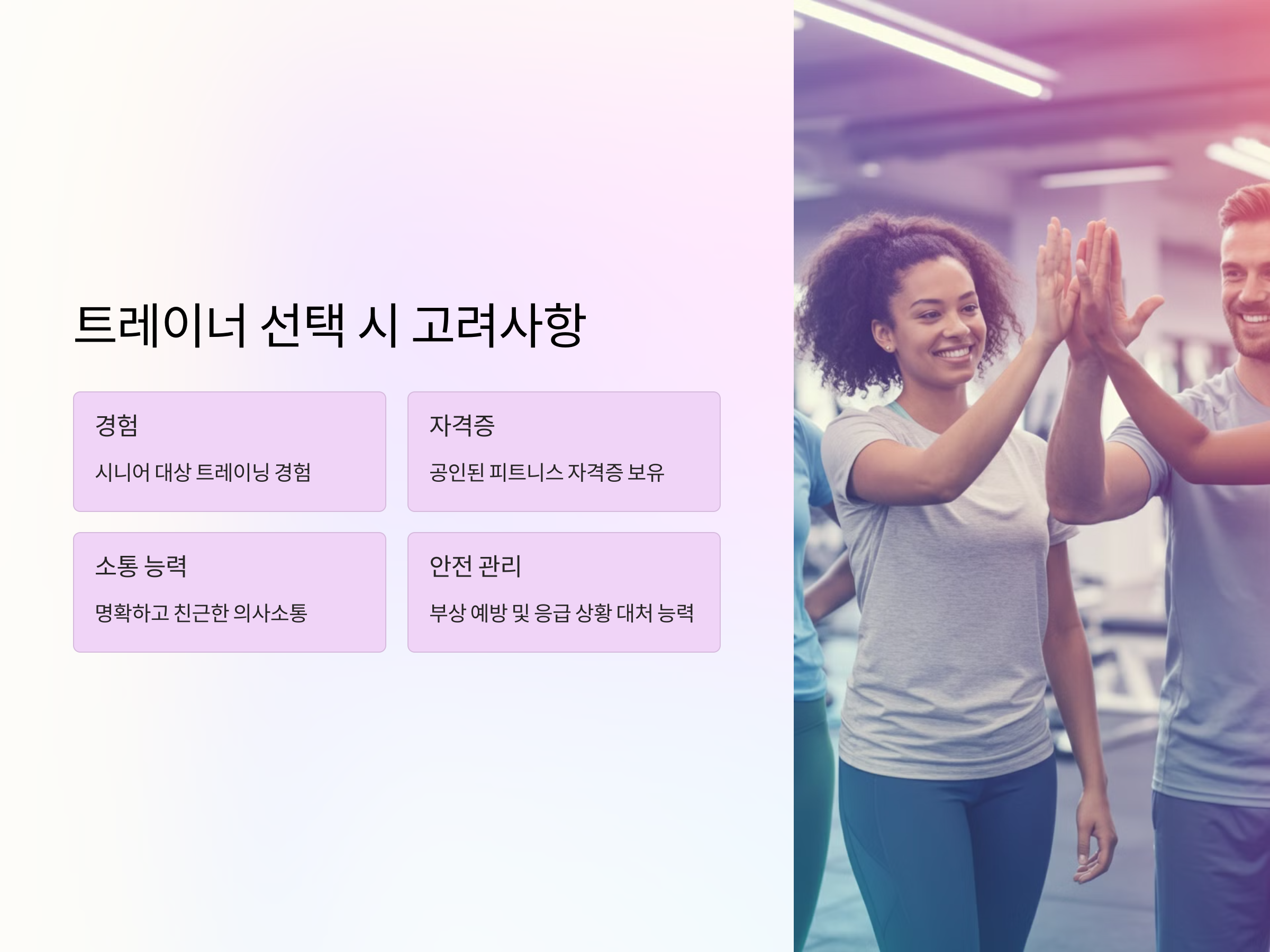 시니어 트레이너 선택 시 고려해야 할 사항