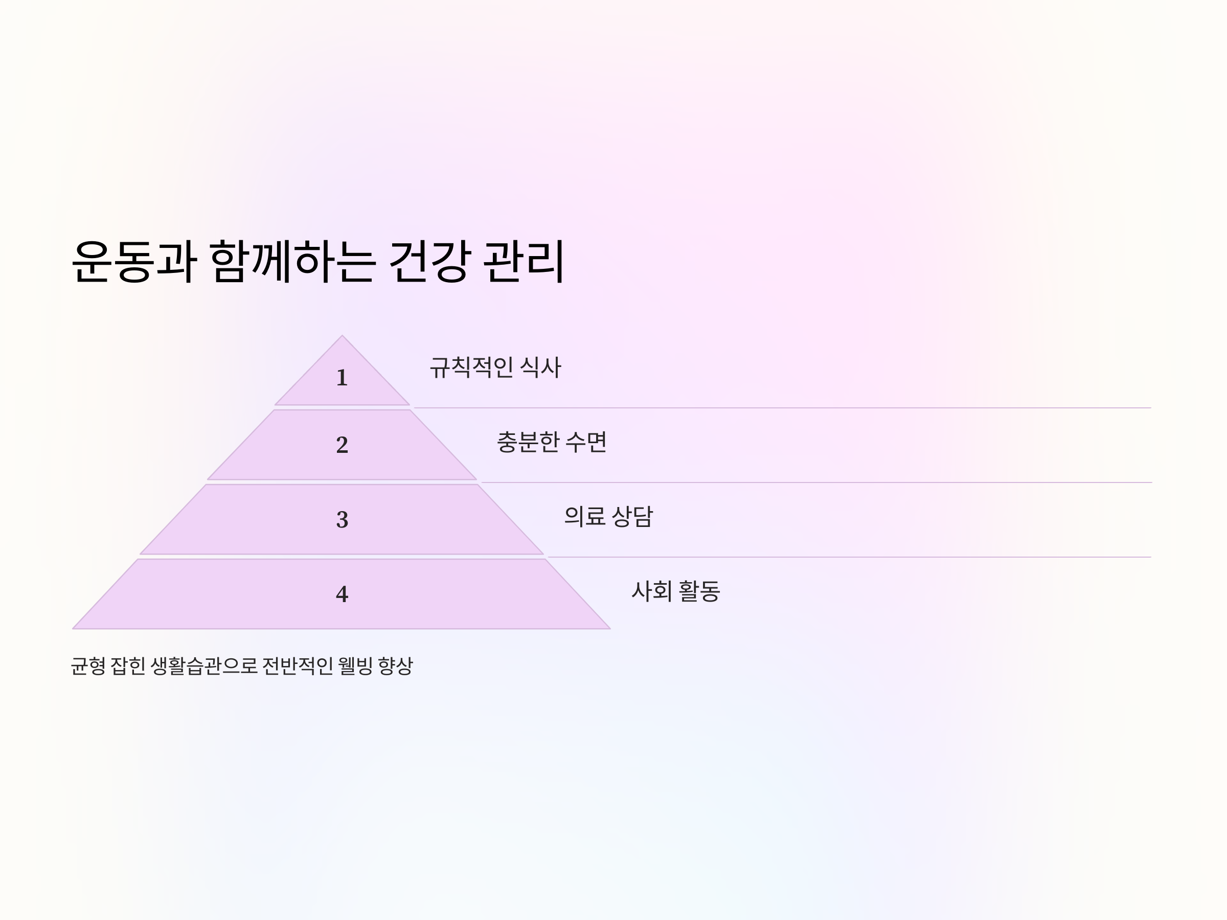 - 충분한 수면: 운동 효과를 높이고 회복 속도를 촉진합니다.