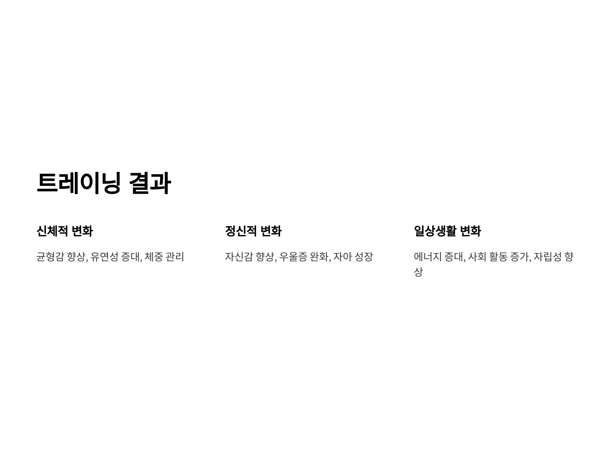- 사회적 교류 기회 제공: 그룹 트레이닝의 경우, 같은 목표를 가진 사람들과 교류하며 사회적 유대감을 형성할 수 있습니다.