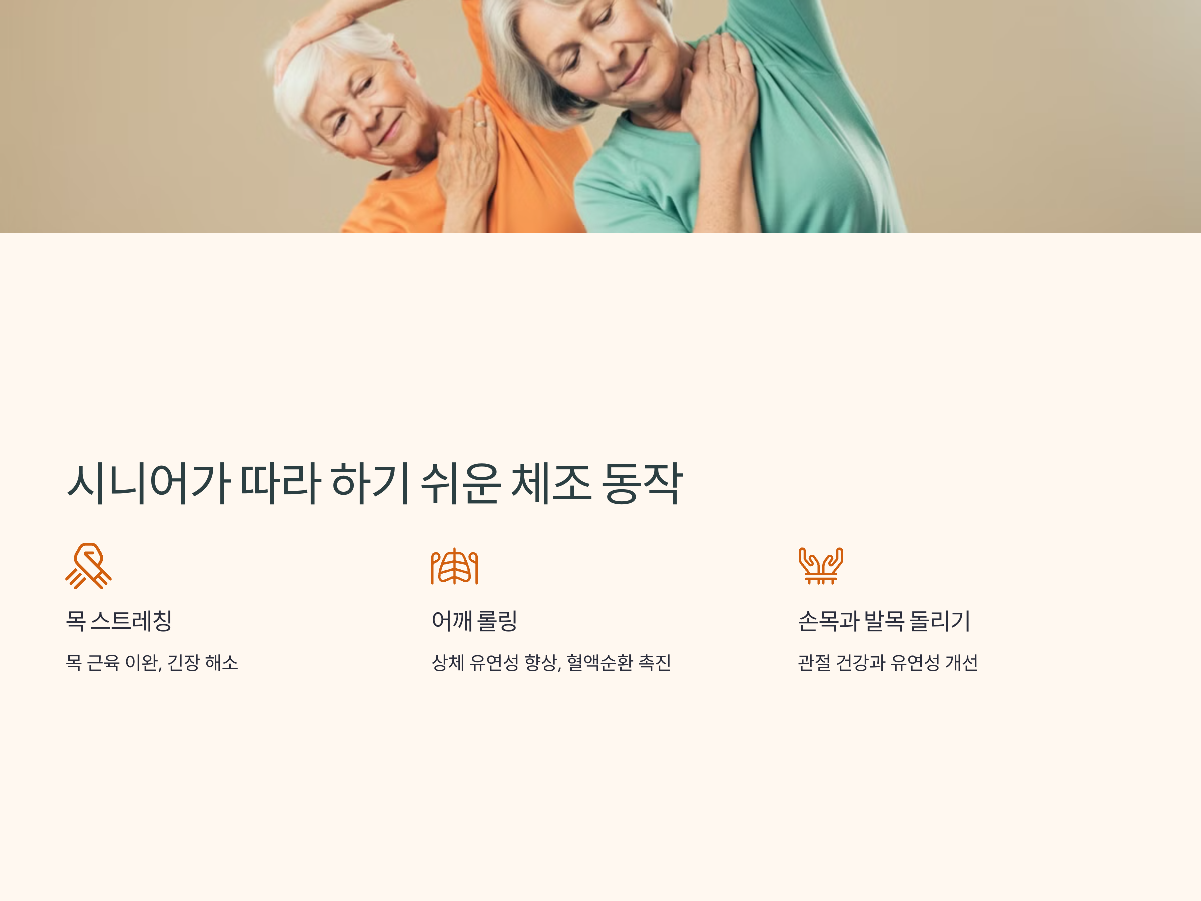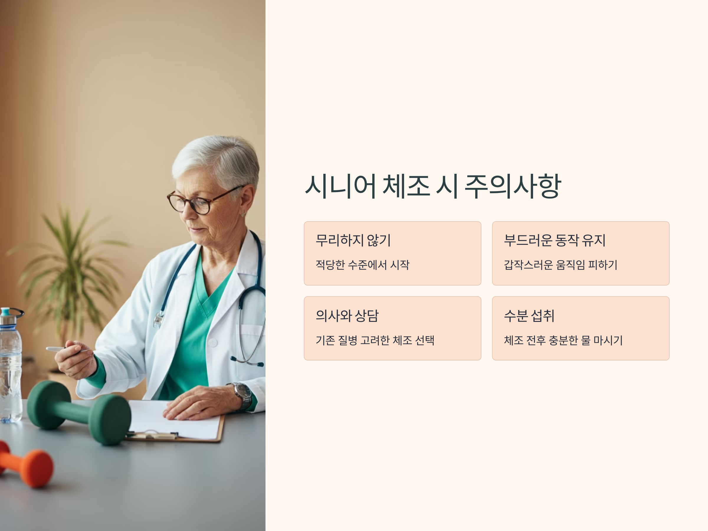 특히, 앉아서 할 수 있는 동작들로 시작하면 더 안전하게 체조를 즐길 수 있습니다.