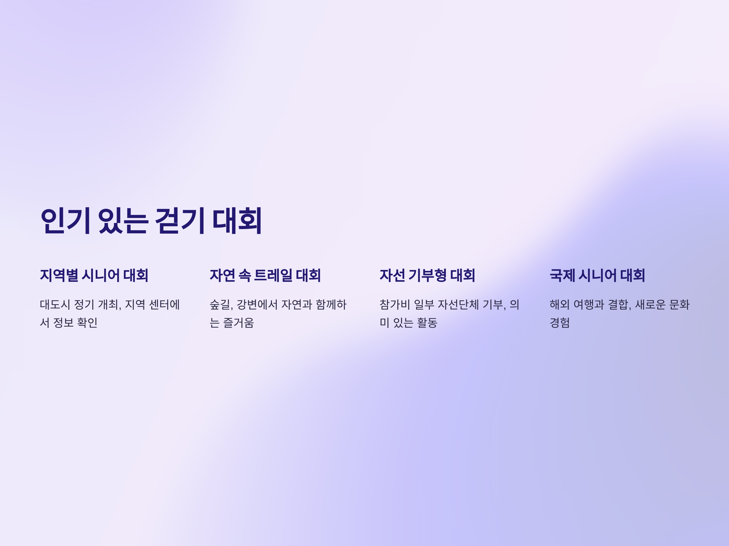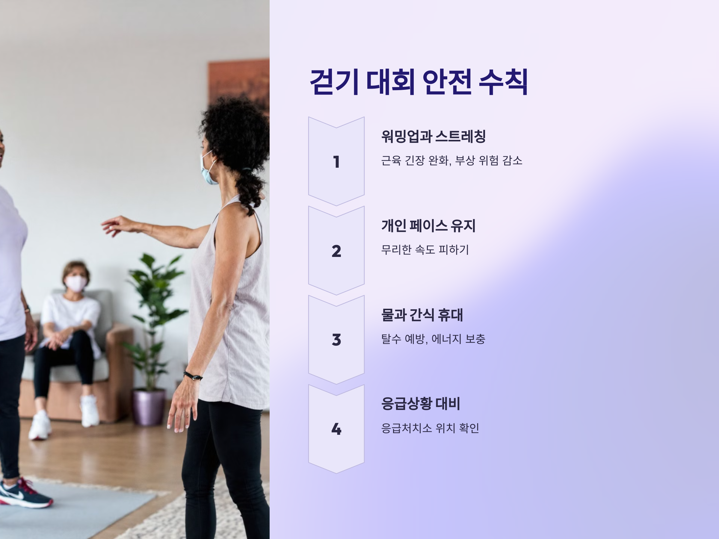 서울, 부산, 대구 등 대도시에서는 정기적으로 시니어 전용 걷기 대회가 개최됩니다. 대회 일정과 상세 정보를 지역 커뮤니티 센터나 시니어 복지관에서 확인할 수 있습니다.