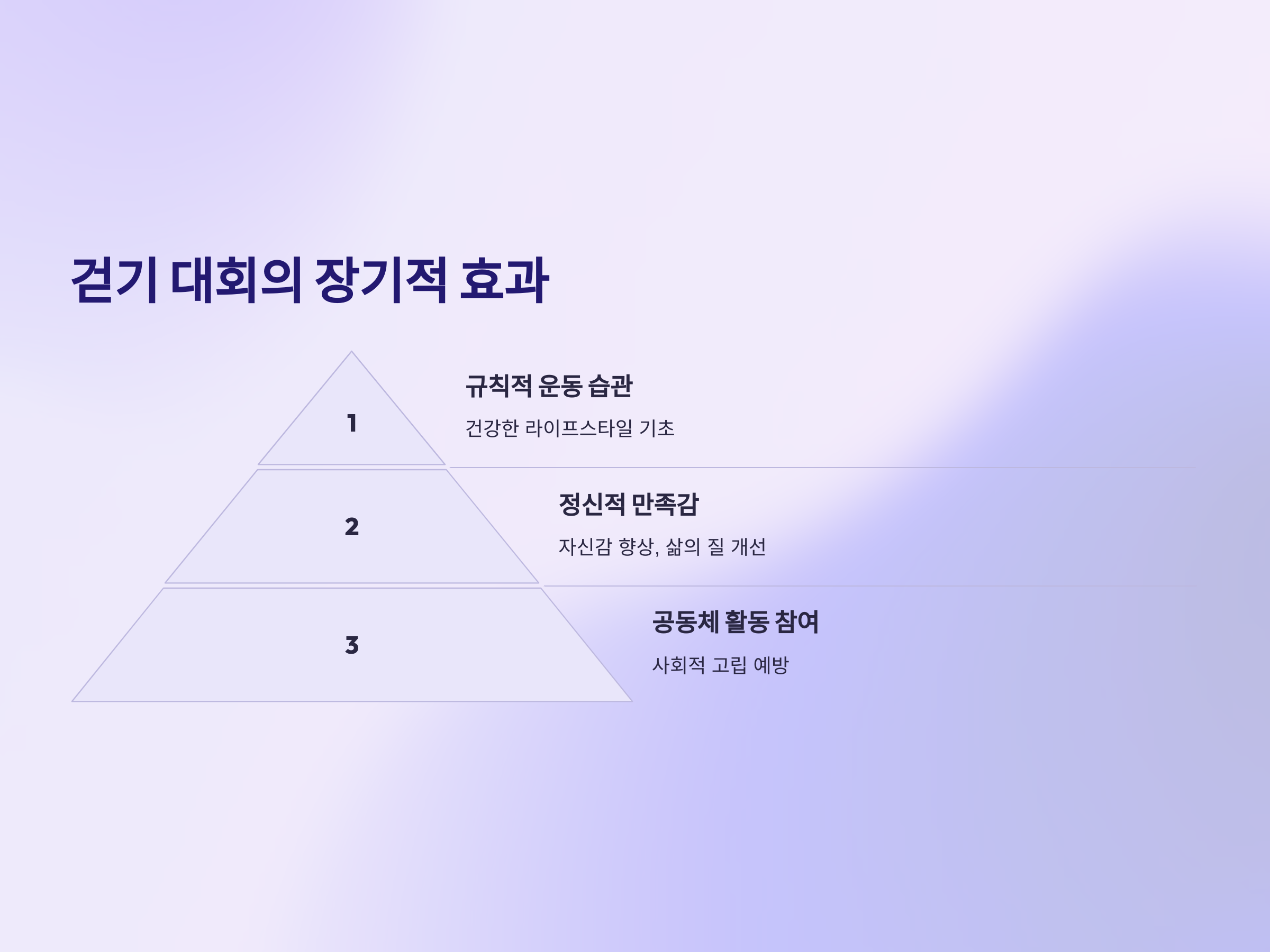 걷기 대회를 통해 형성된 네트워크는 지속적인 사회 활동의 계기가 됩니다. 이는 시니어의 사회적 고립을 예방하는 데 효과적입니다.