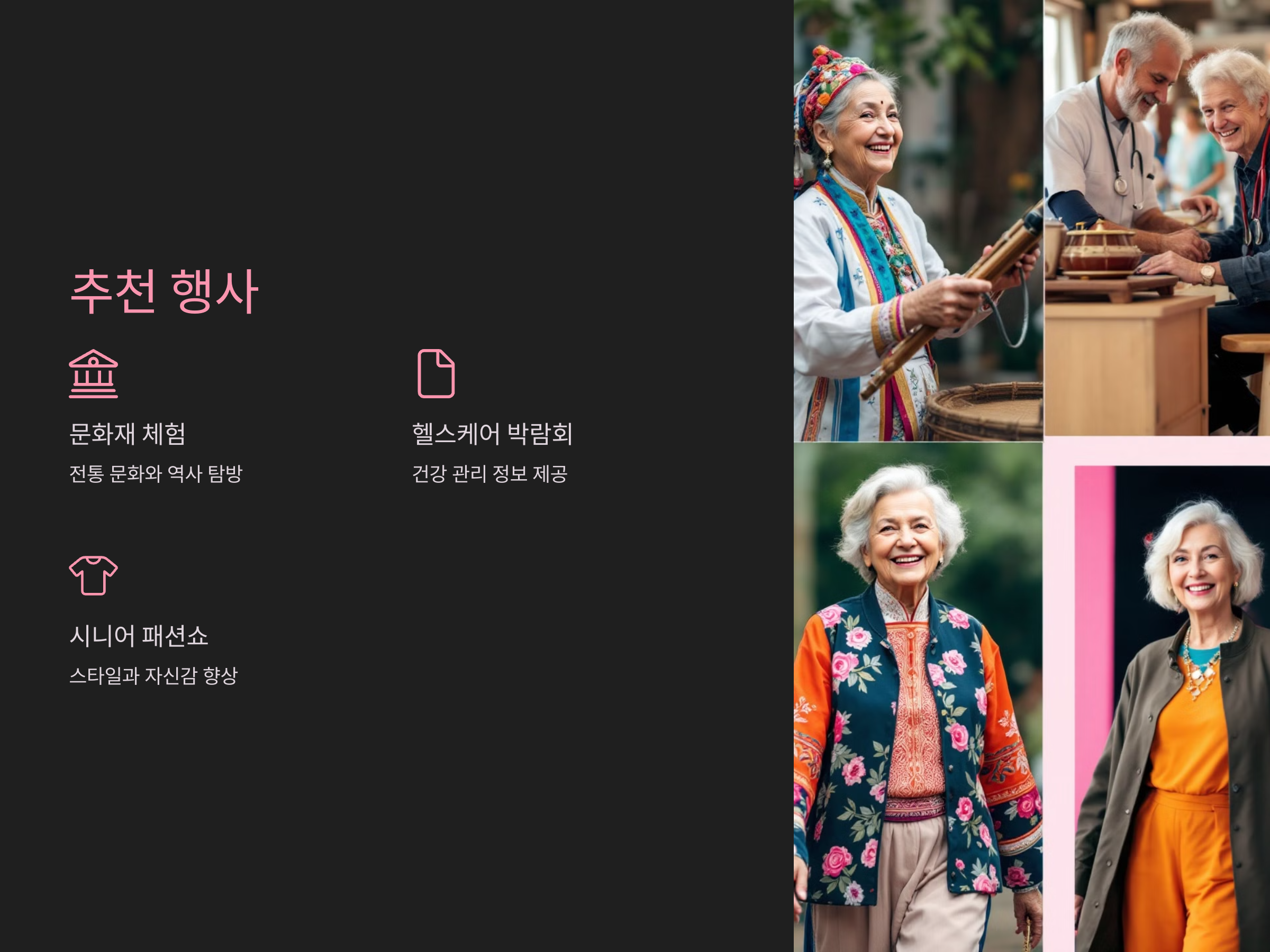 - 시니어 패션쇼: 스타일과 자신감을 동시에!