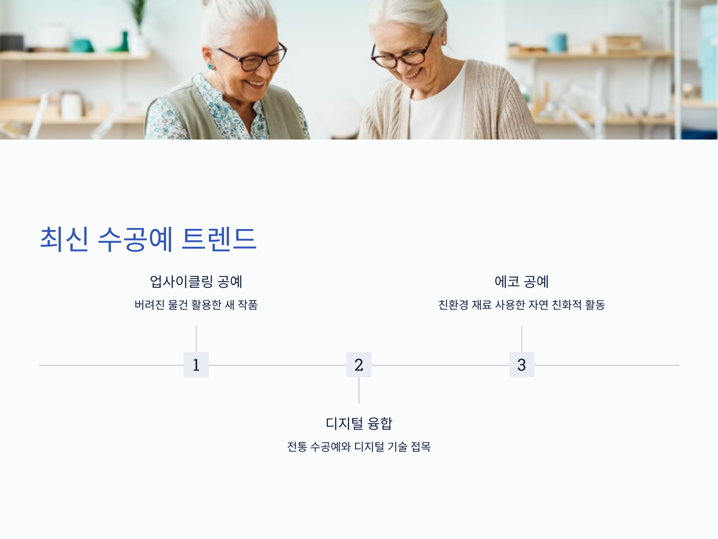 - 에코 공예: 친환경 재료를 사용해 자연과 함께하는 공예 활동도 관심을 모으고 있습니다.