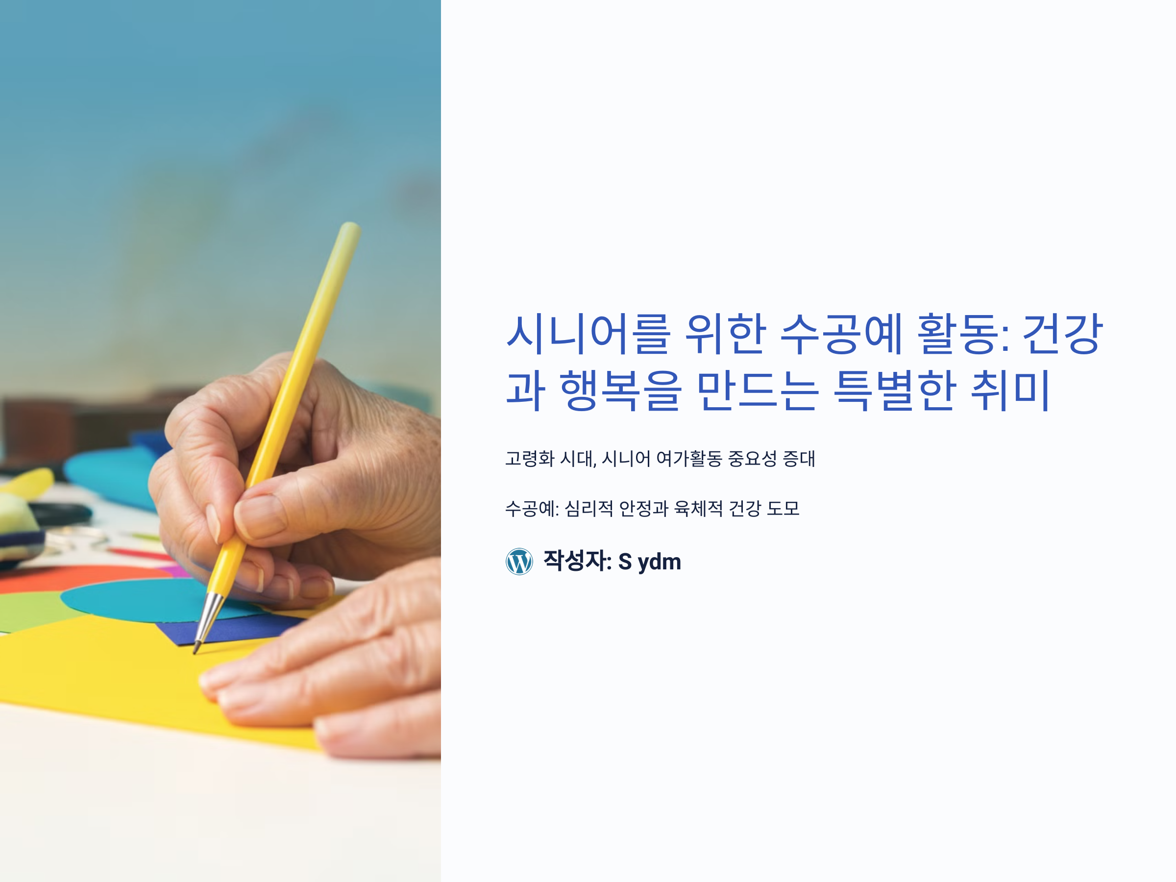 고령화 시대를 맞아 시니어들의 여가활동에 대한 관심이 커지고 있습니다. 특히 수공예 활동은 심리적 안정과 육체적 건강을 도모하는 데 큰 역할을 합니다. 이 글에서는 시니어들에게 적합한 다양한 수공예 활동과 시작 방법을 소개하며, 건강과 창의력을 동시에 증진시키는 비결을 알려드립니다.