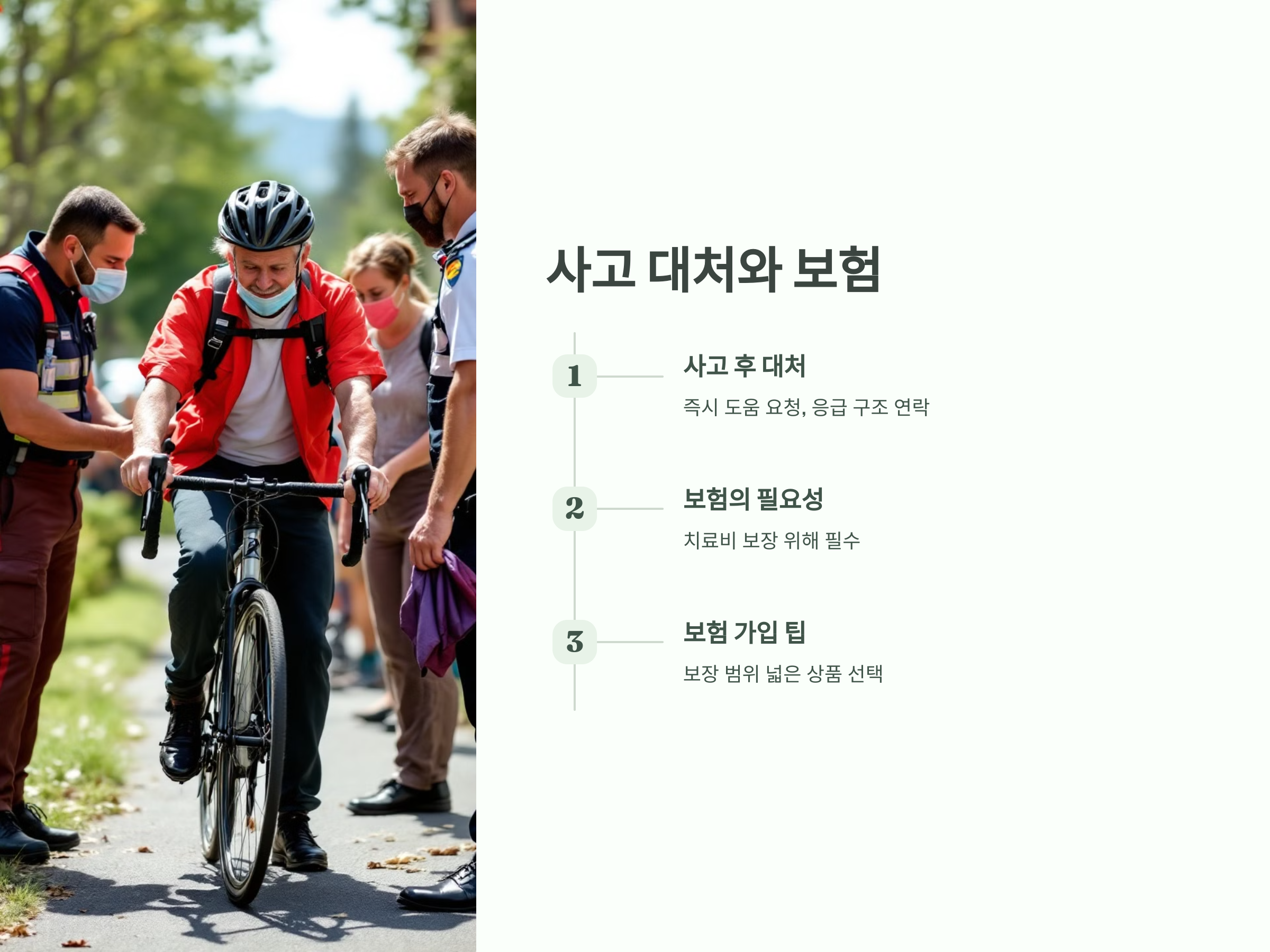 - 보험의 필요성: 자전거 사고 시 치료비를 보장받을 수 있는 보험은 꼭 필요합니다.