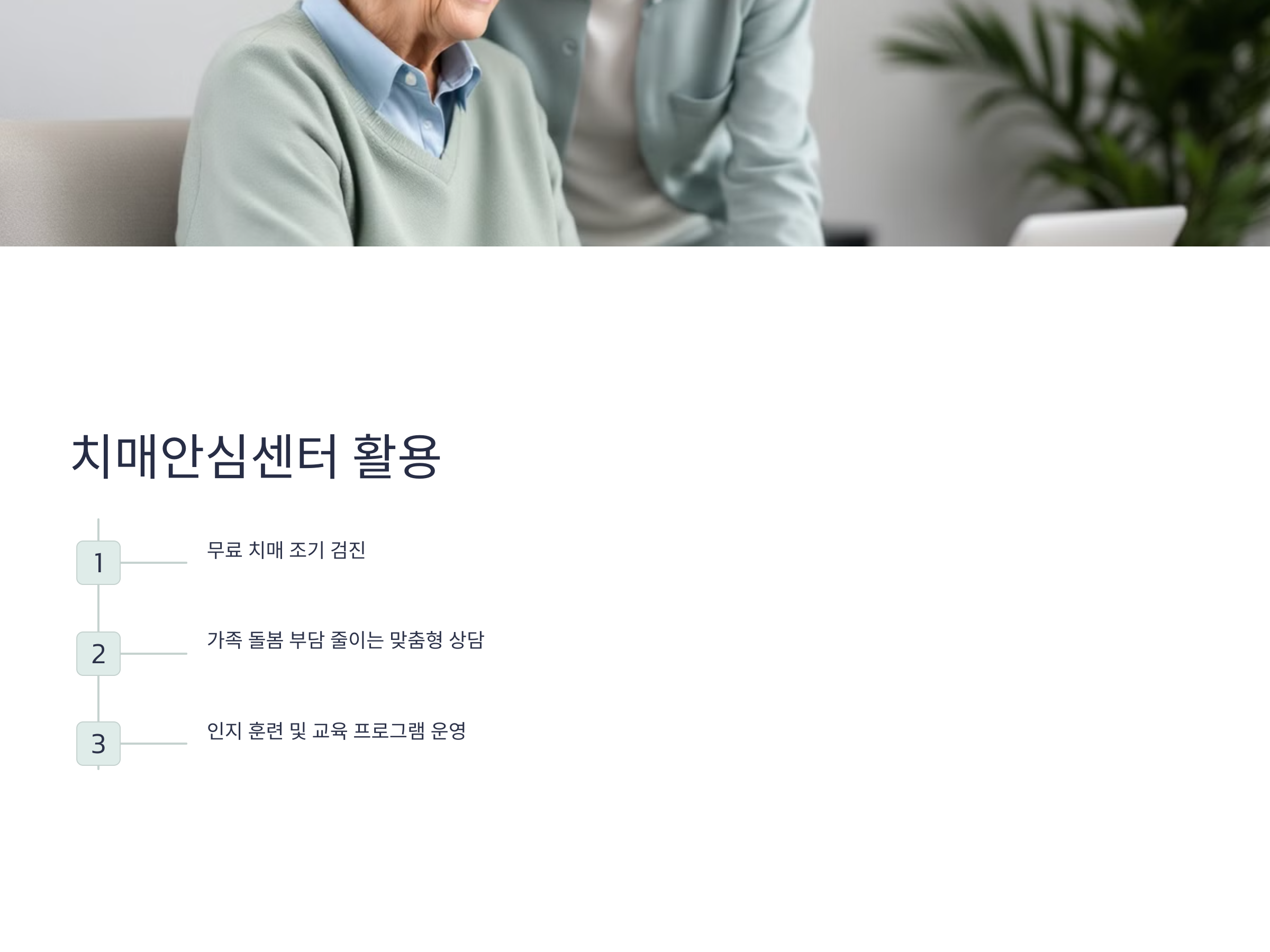- 조기 검진: 치매 조기 발견을 위한 무료 검진