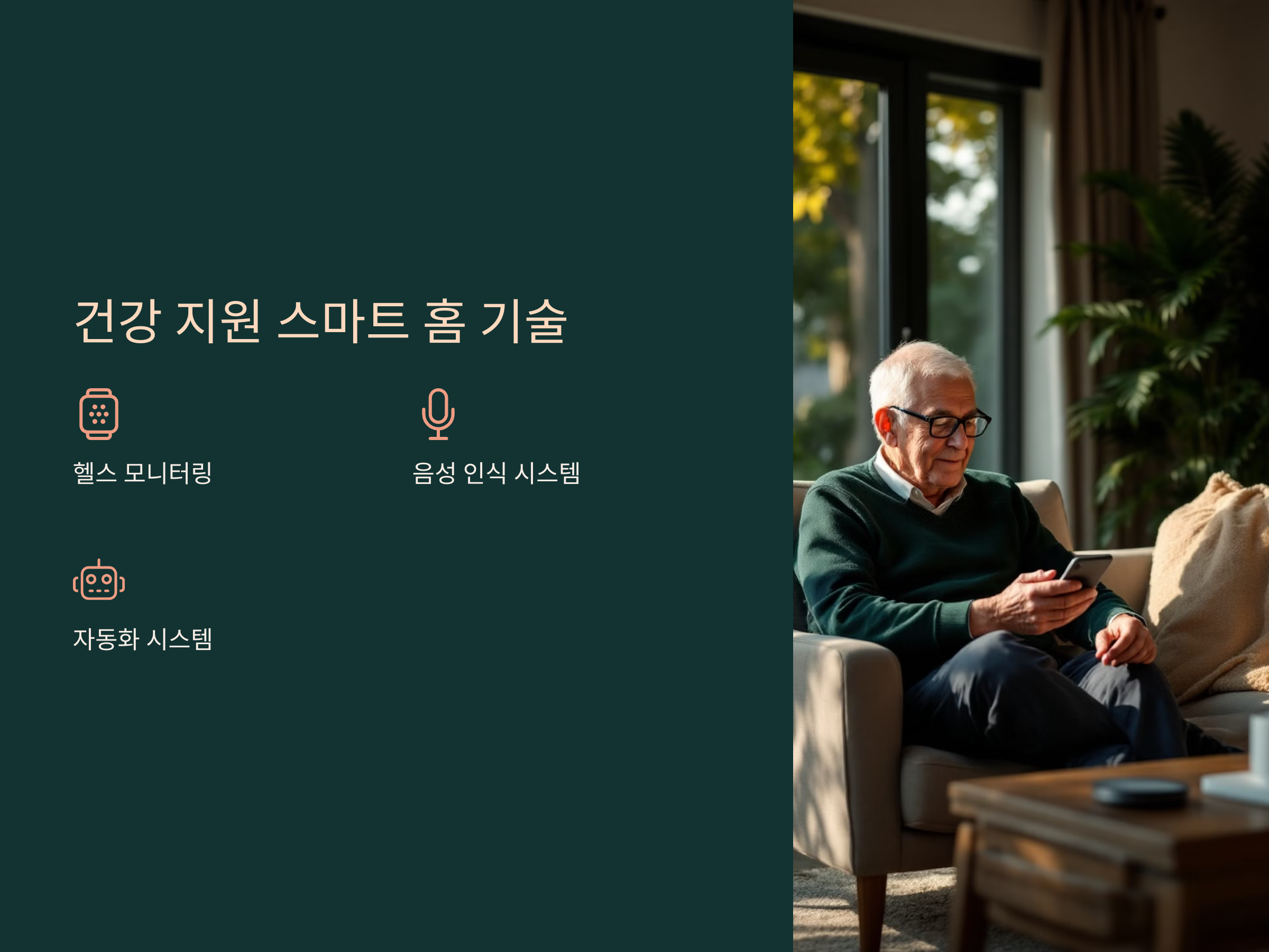 스마트 홈 기술은 시니어가 건강하고 독립적으로 생활할 수 있도록 돕는 강력한 도구입니다.
