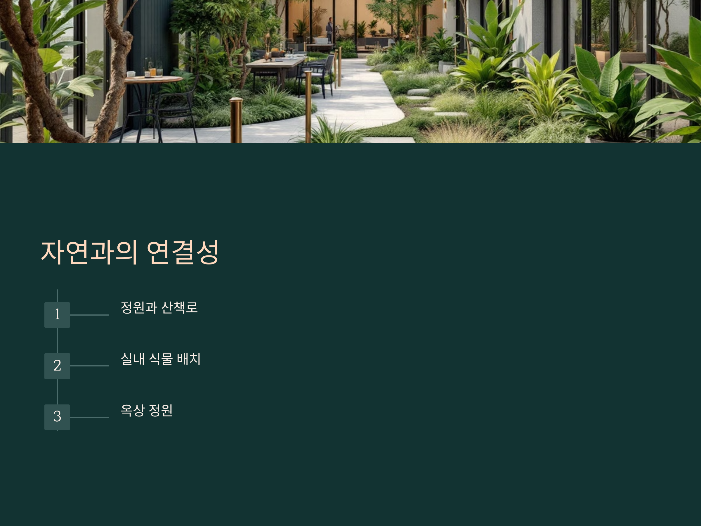 자연과 접할 기회를 제공하는 공간은 심리적 안정감과 삶의 질을 높이는 데 기여합니다.