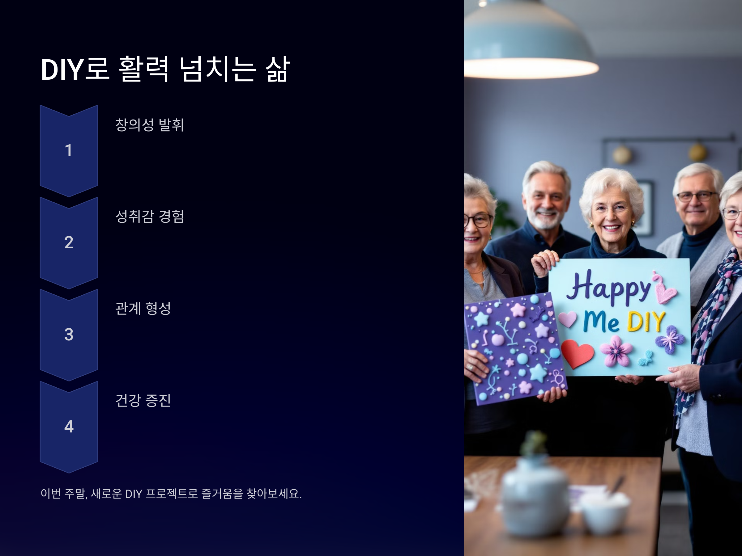 DIY는 단순한 취미를 넘어 삶에 활력을 더하는 중요한 활동입니다. 이번 주말, 시니어 DIY 프로젝트로 새로운 즐거움을 찾아보세요.