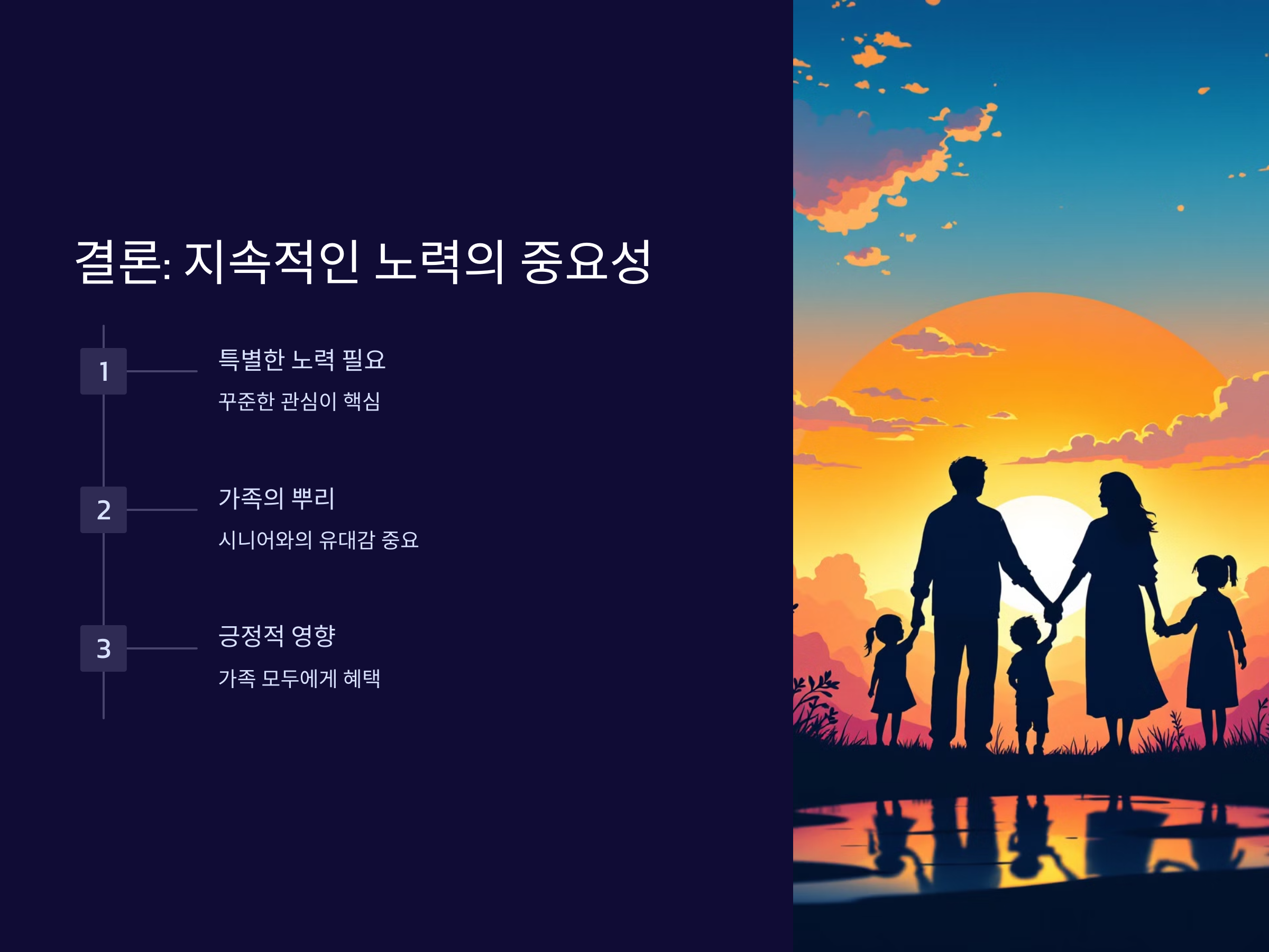 시니어 세대는 가족의 뿌리이며, 그들과의 유대감을 깊이 하는 것은 가족 모두에게 긍정적인 영향을 미칩니다.