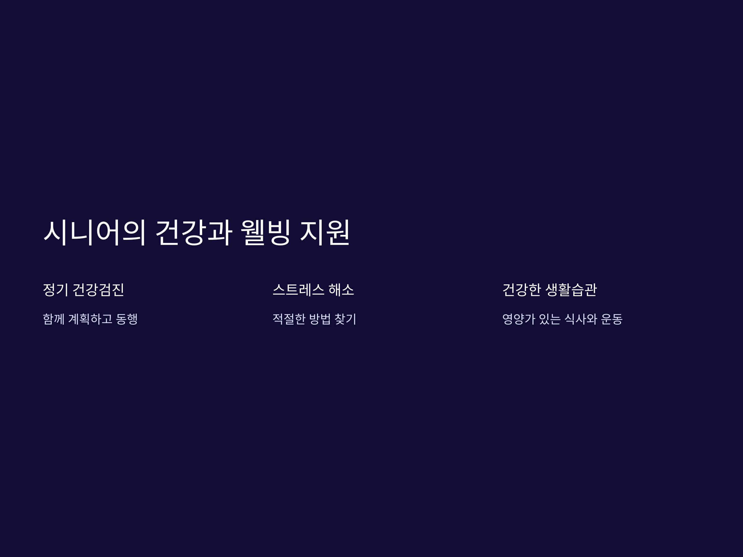 시니어의 신체적, 정신적 건강을 챙기는 것은 관계 강화에 필수적입니다.