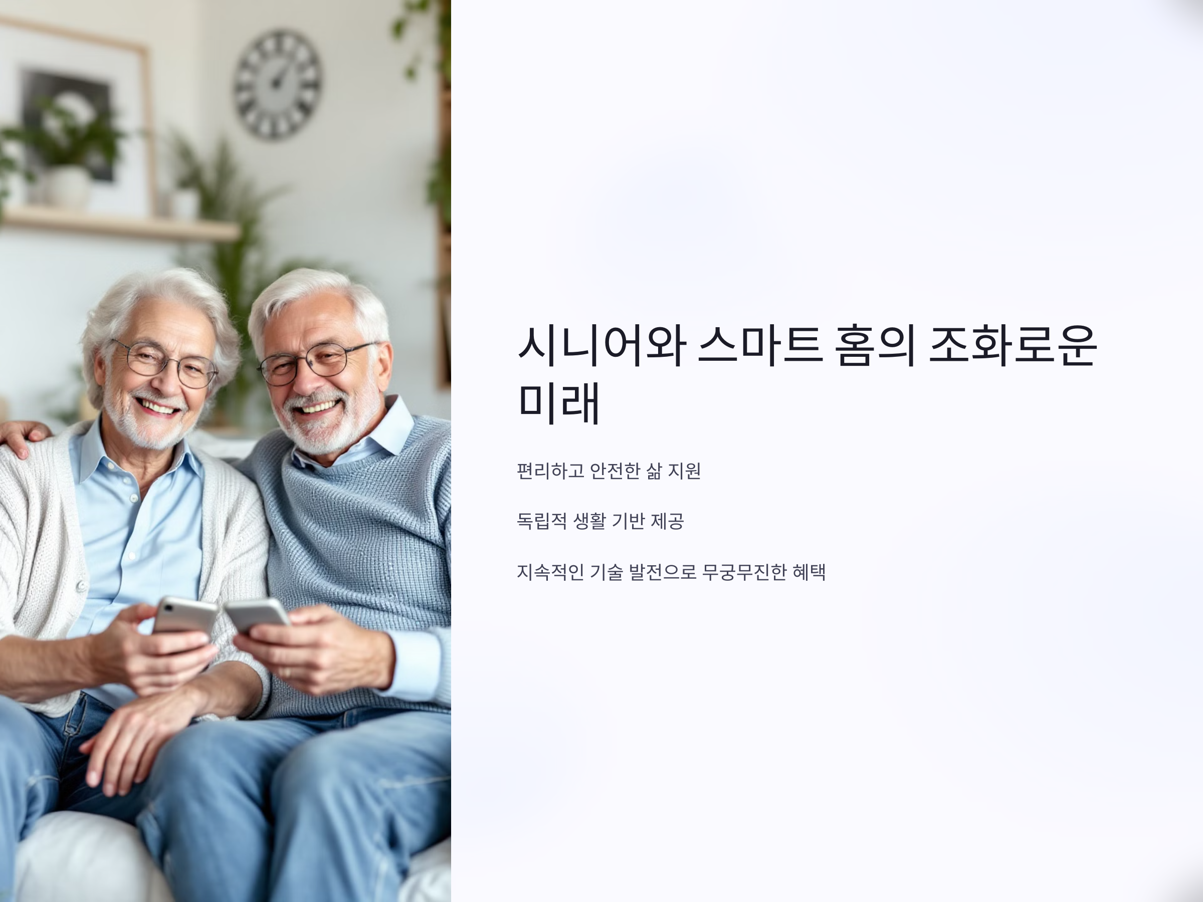 스마트 홈 기술은 앞으로 더 발전할 것이며, 이 기술을 통해 시니어들이 누릴 수 있는 혜택은 무궁무진합니다. 지금 스마트 홈 기기를 도입하여 새로운 생활을 시작해보세요.