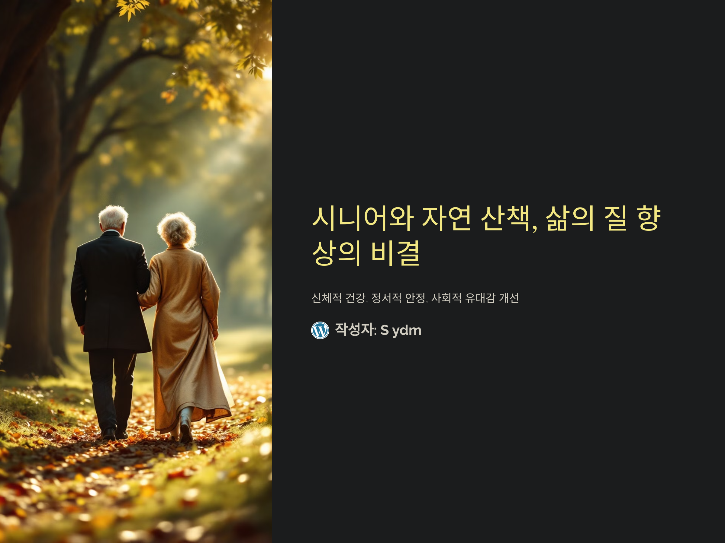 시니어와 자연 산책을 함께하면 건강뿐 아니라 정서적 안정, 사회적 유대감까지 얻을 수 있습니다. 일상 속 작은 변화를 통해 더 나은 삶을 경험할 수 있도록 오늘부터 산책을 시작해보세요.