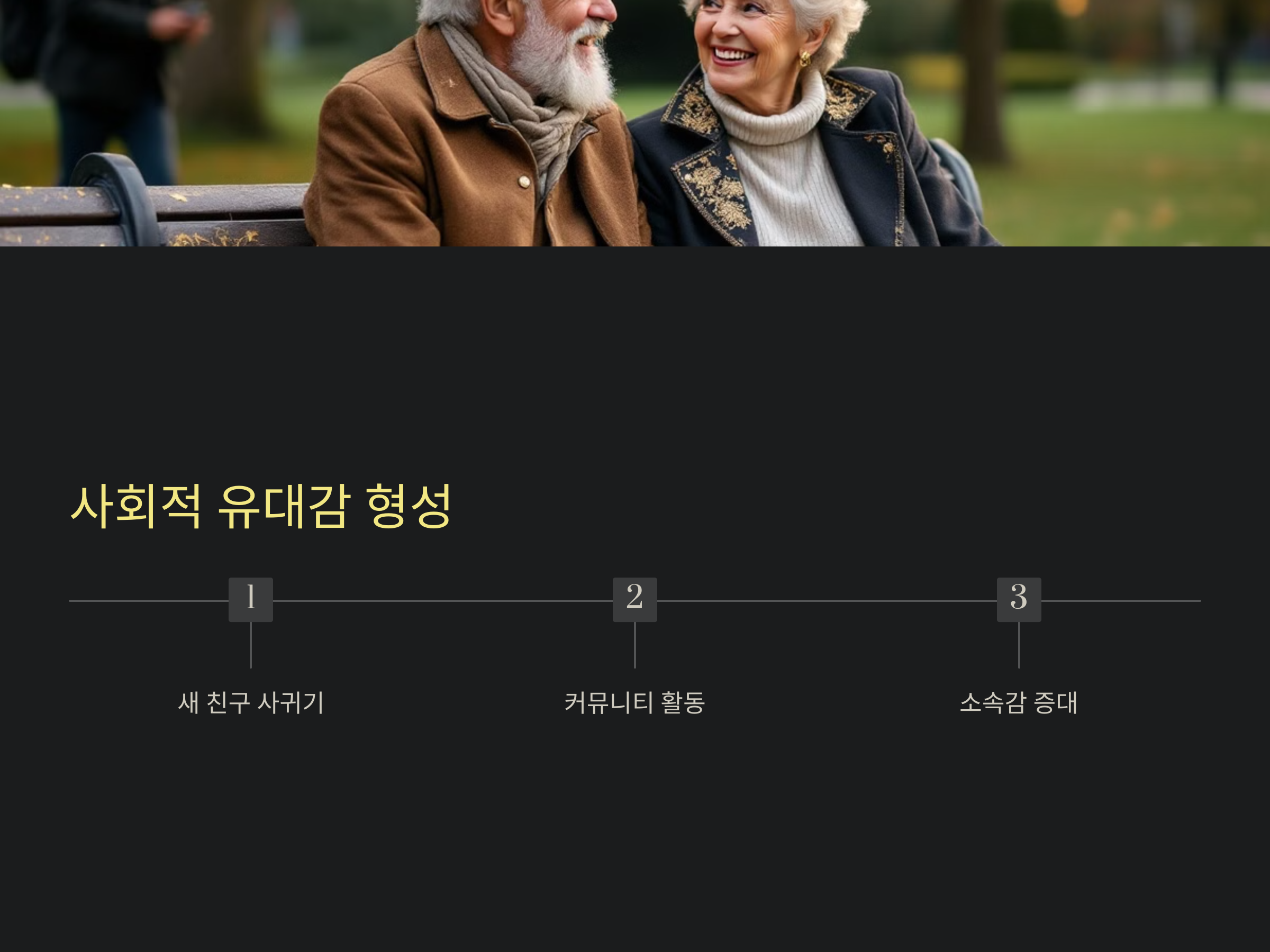 산책은 시니어들이 주변 사람들과 유대감을 형성할 수 있는 좋은 기회입니다. 특히 커뮤니티 내 산책 모임에 참여하면 새로운 친구를 사귀고, 외로움을 극복할 수 있습니다.