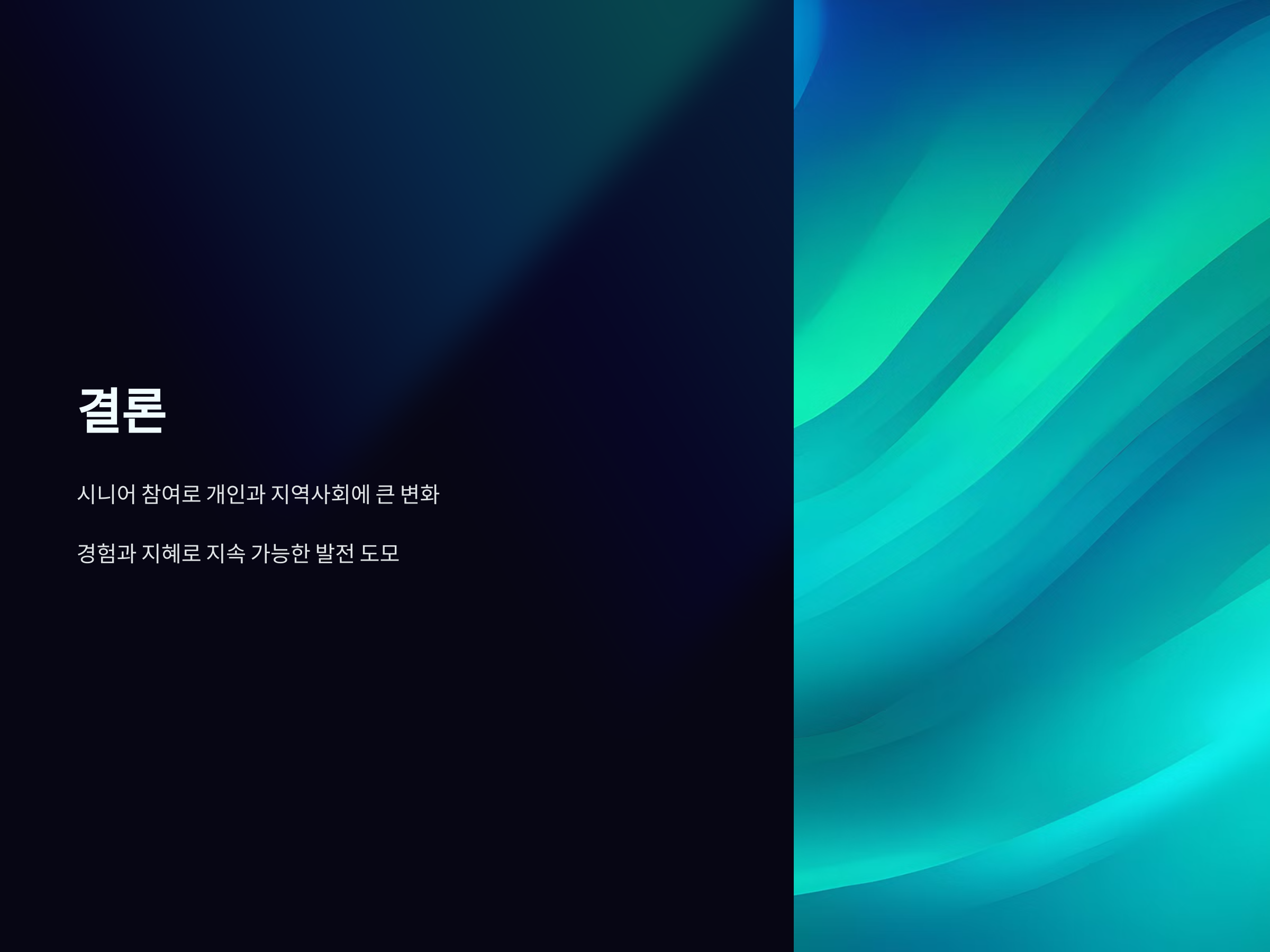 한국에서는 시니어들이 주도적으로 마을 공동체 프로젝트를 추진해, 지역 문화 보존과 경제 활성화를 도모한 사례가 있습니다.