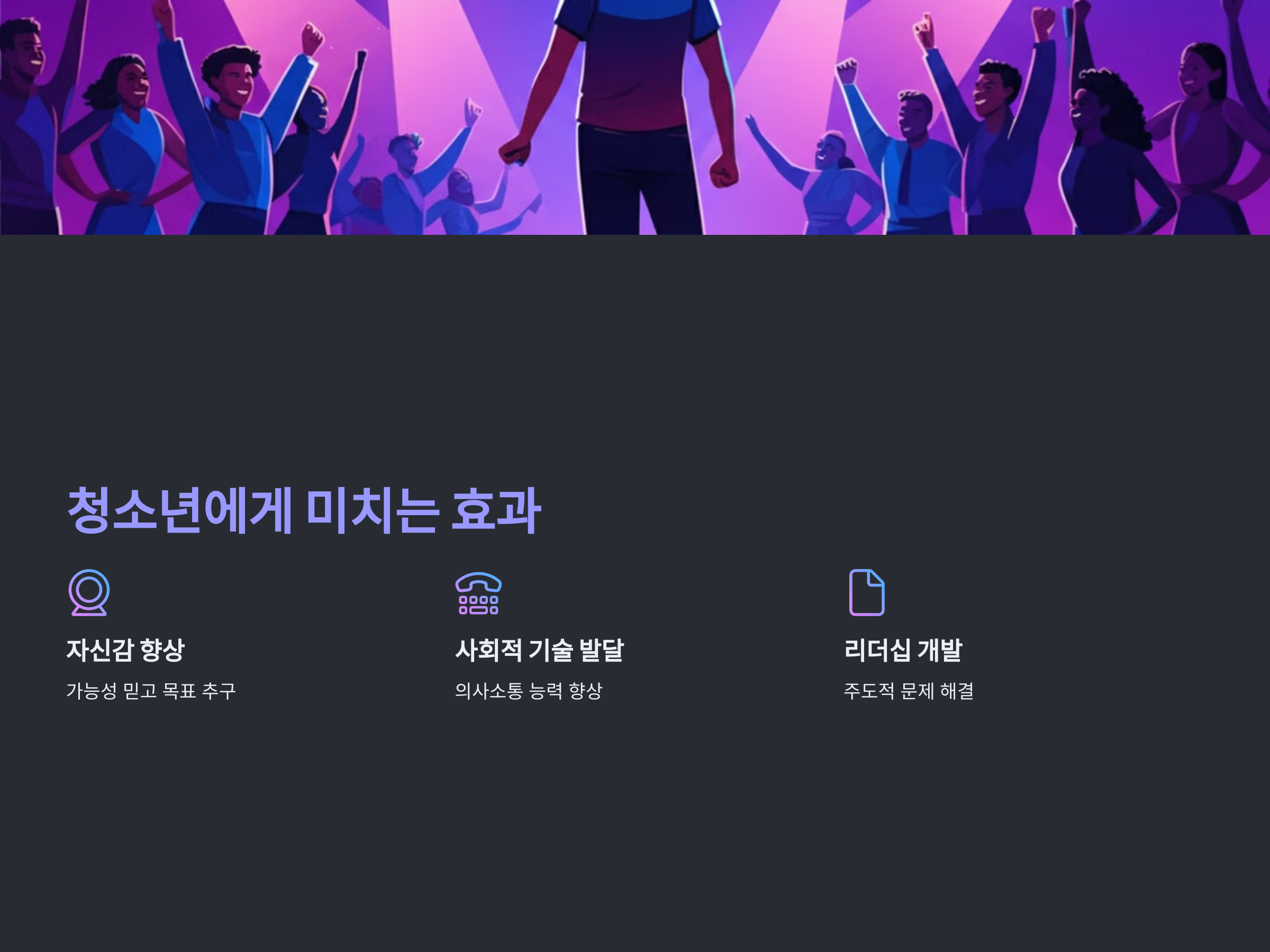 - 리더십 개발: 멘토링 경험은 청소년이 주도적으로 문제를 해결하고 책임감을 갖는 리더로 성장하는 데 도움을 줍니다.