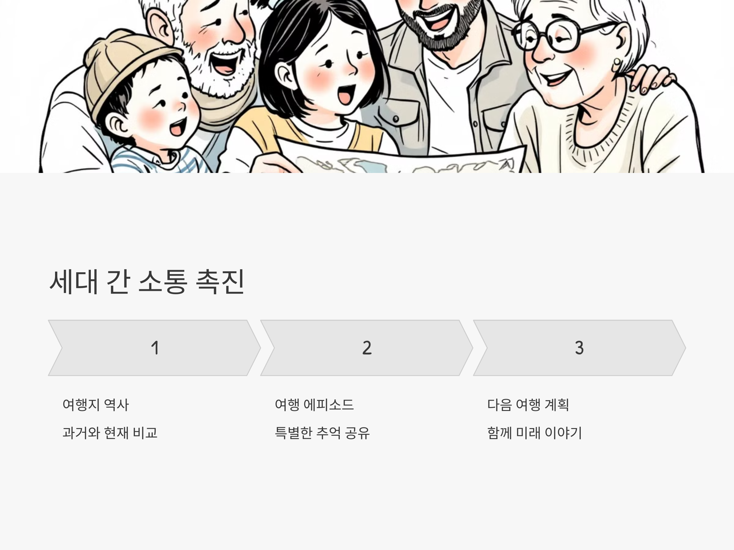 사진을 공유하며 대화의 주제를 확장하면 세대 간 소통이 원활해집니다. 시니어 세대의 경험과 여행지가 주는 역사적 맥락을 이야기하며 젊은 세대와 교감할 수 있습니다.