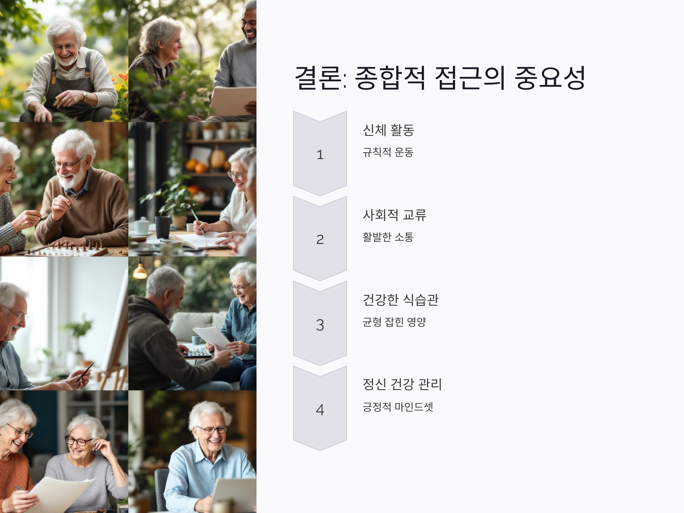 사회적 고립은 노년층 우울증의 주요 원인 중 하나입니다. 사람들과의 상호작용 부족은 감정적 소외감을 증가시키고 스트레스를 유발합니다. 반대로 활발한 사회적 활동은 감정적인 안정감을 제공하고 뇌 기능을 자극합니다.