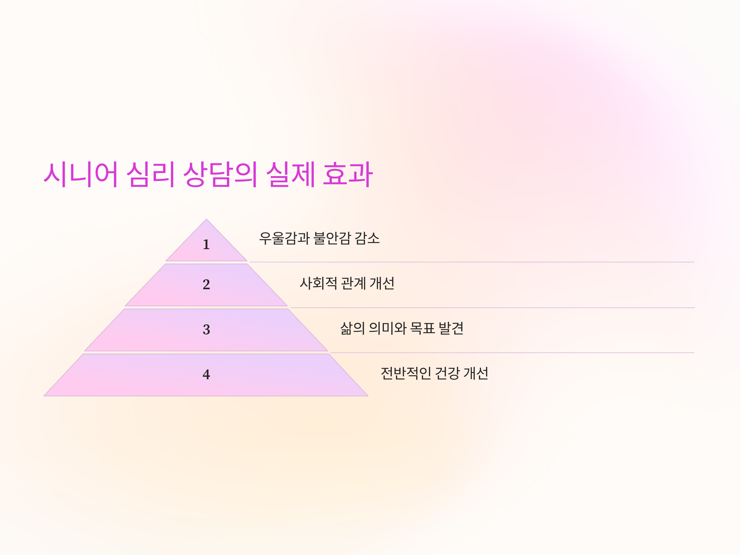 심리 상담을 받은 시니어들의 경험은 매우 긍정적입니다. 다음은 심리 상담이 가져오는 실제 효과들입니다.