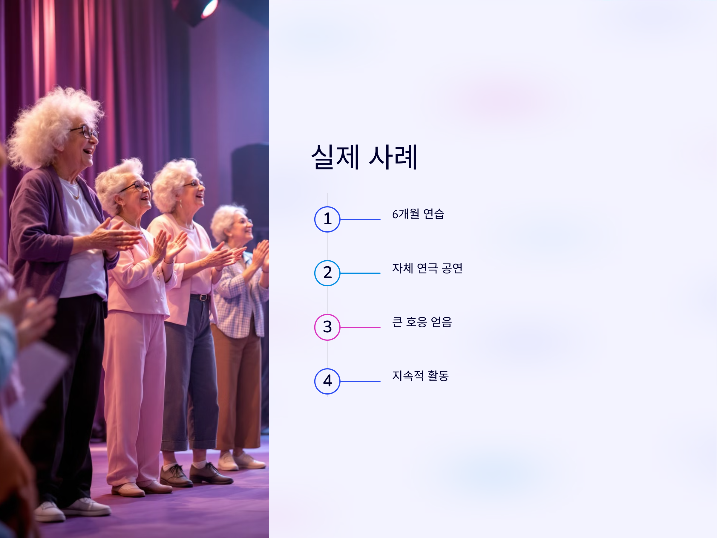 많은 시니어들이 연극 체험을 통해 삶의 활력을 되찾았습니다.