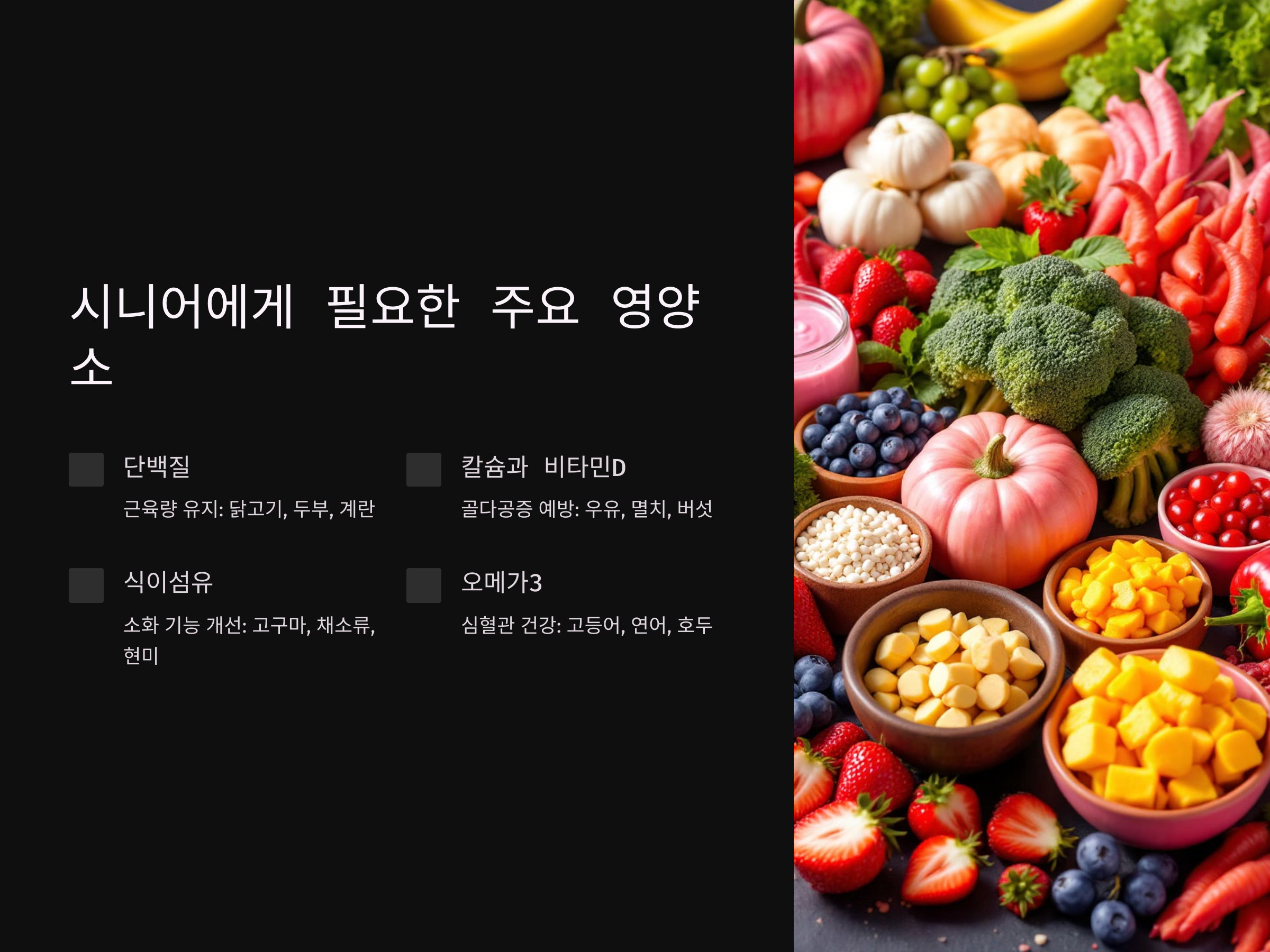 시니어에게 필요한 주요 영양소