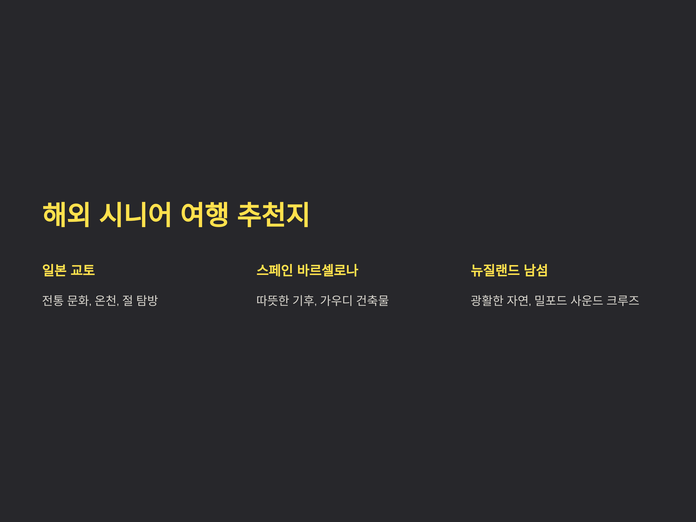 해외 시니어 여행 추천지 TOP 3