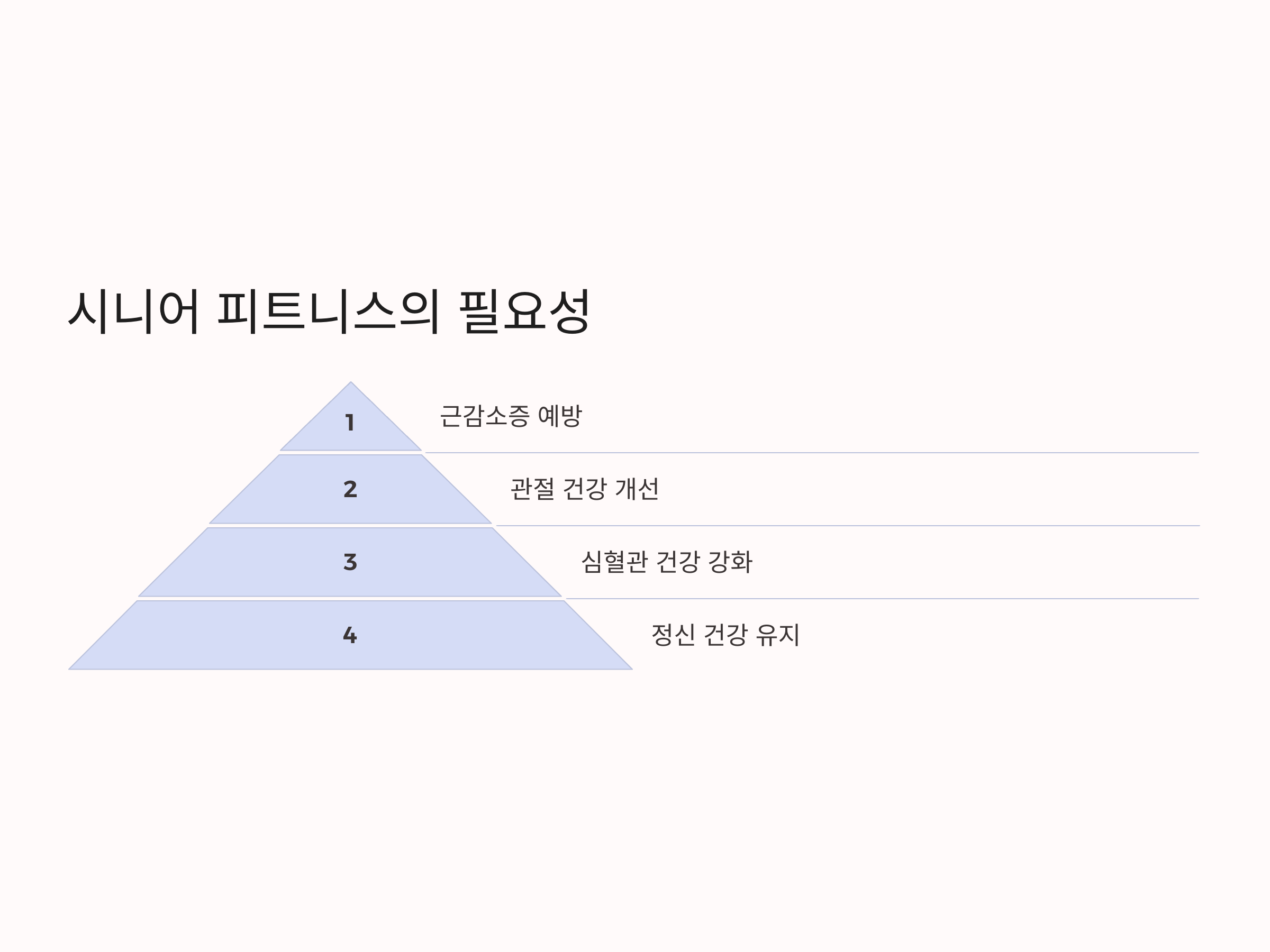 나이가 들면 자연스럽게 근육량이 감소하는데, 이를 방치하면 일상생활에 큰 지장을 줄 수 있습니다. 시니어 피트니스는 이를 예방하고 근력을 유지하는 데 효과적입니다.