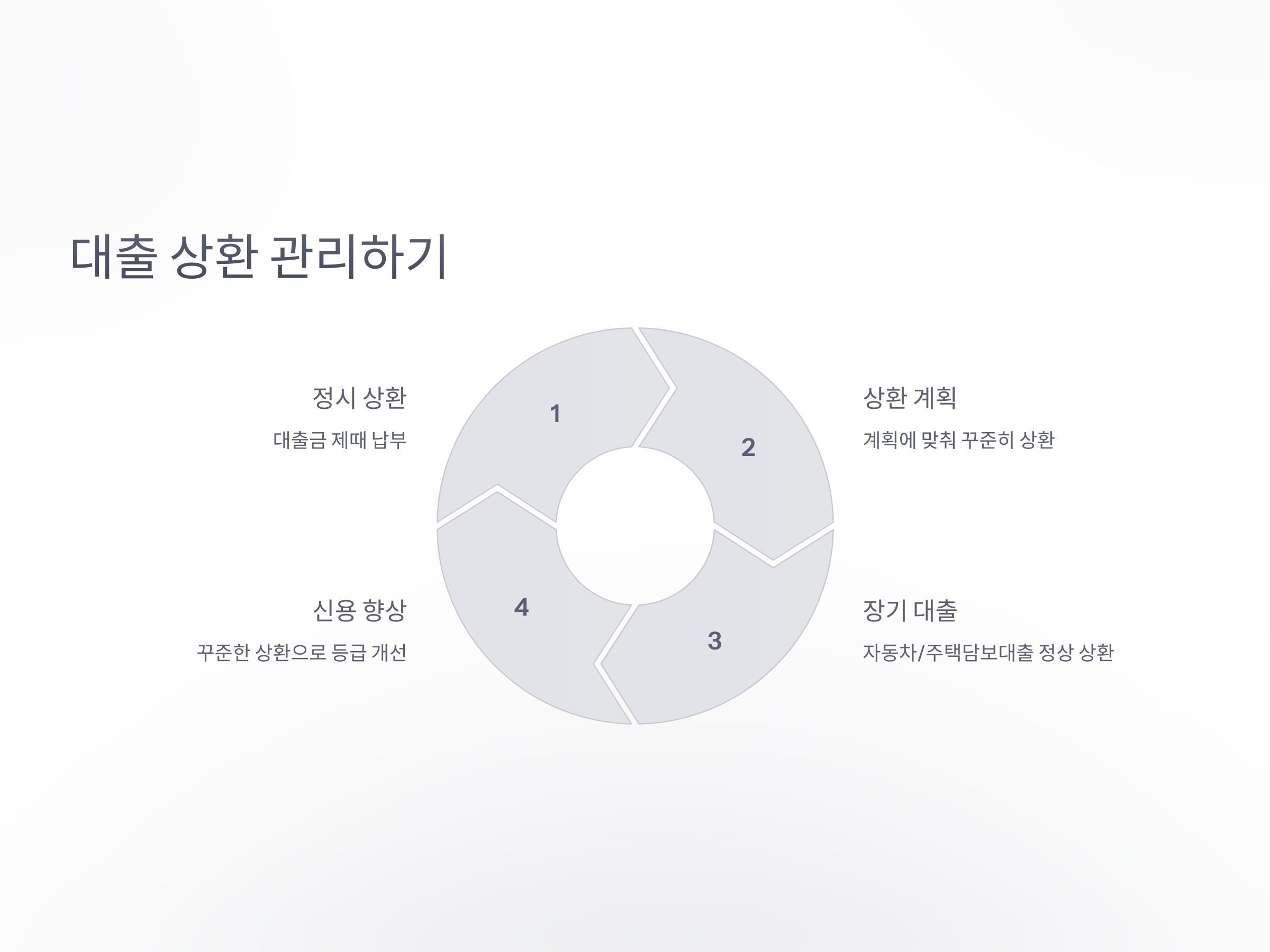 특히, 자동차 대출이나 주택담보대출과 같은 장기 대출의 경우, 일정 기간 동안 정상 상환을 하면 신용등급이 상승하는 경향이 있습니다. 대출을 받은 후에는 매월 일정 금액을 제때 상환하여 신용등급을 높일 수 있습니다.