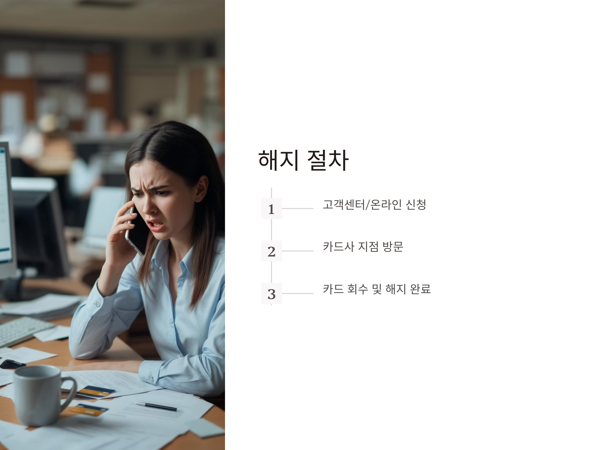 이번 포스팅에서는 신용카드를 해지하는 정확한 절차를 상세히 설명하며, 자주 발생할 수 있는 실수나 문제들을 예방할 수 있는 팁도 함께 제공하려고 합니다. 카드 해지 시 주의사항부터, 해지 후 후속 조치까지 놓치지 말아야 할 점들을 하나하나 짚어드리겠습니다.